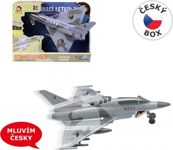 Izbaudi dinamiskas aviācijas misijas ar detalizētu iznīcinātāja modeli, kas rotāts ar Čehijas Republikas atpazīšanas zīmēm. Modelis piedāvā autentiskus dialogus čehu valodā starp vadības torni un pilotu, gaismas efektus un lidojoša iznīcinātāja skaņu, kas pastiprina spēles atmosfēru.