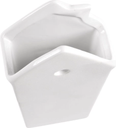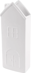 Pateicoties kvalitatīvai keramikai ar spīdīgu balto glazūru, tas izskatās ļoti eleganti un ir vienkārši kopjams. Mājīgas mājiņas minimālistiskais dekors iederas virtuvē, viesistabā, guļamistabā un bērnu istabā. Vienkārša pakarināšana uz metāla āķa atvieglo ikdienas lietošanu.