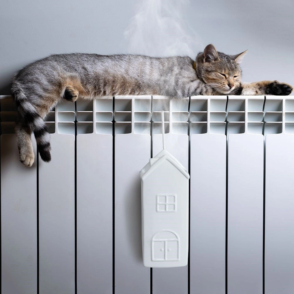 Praktisks un stilīgs radiatora gaisa mitrinātājs mājiņas formā ir ideāls palīgs sausā gaisa periodā apkures laikā. Pietiek to piepildīt ar ūdeni un pakarināt uz radiatora – iztvaikojošais ūdens dabiski palielina telpas gaisa mitrumu, veidojot patīkamāku vidi elpošanai un miegam.
