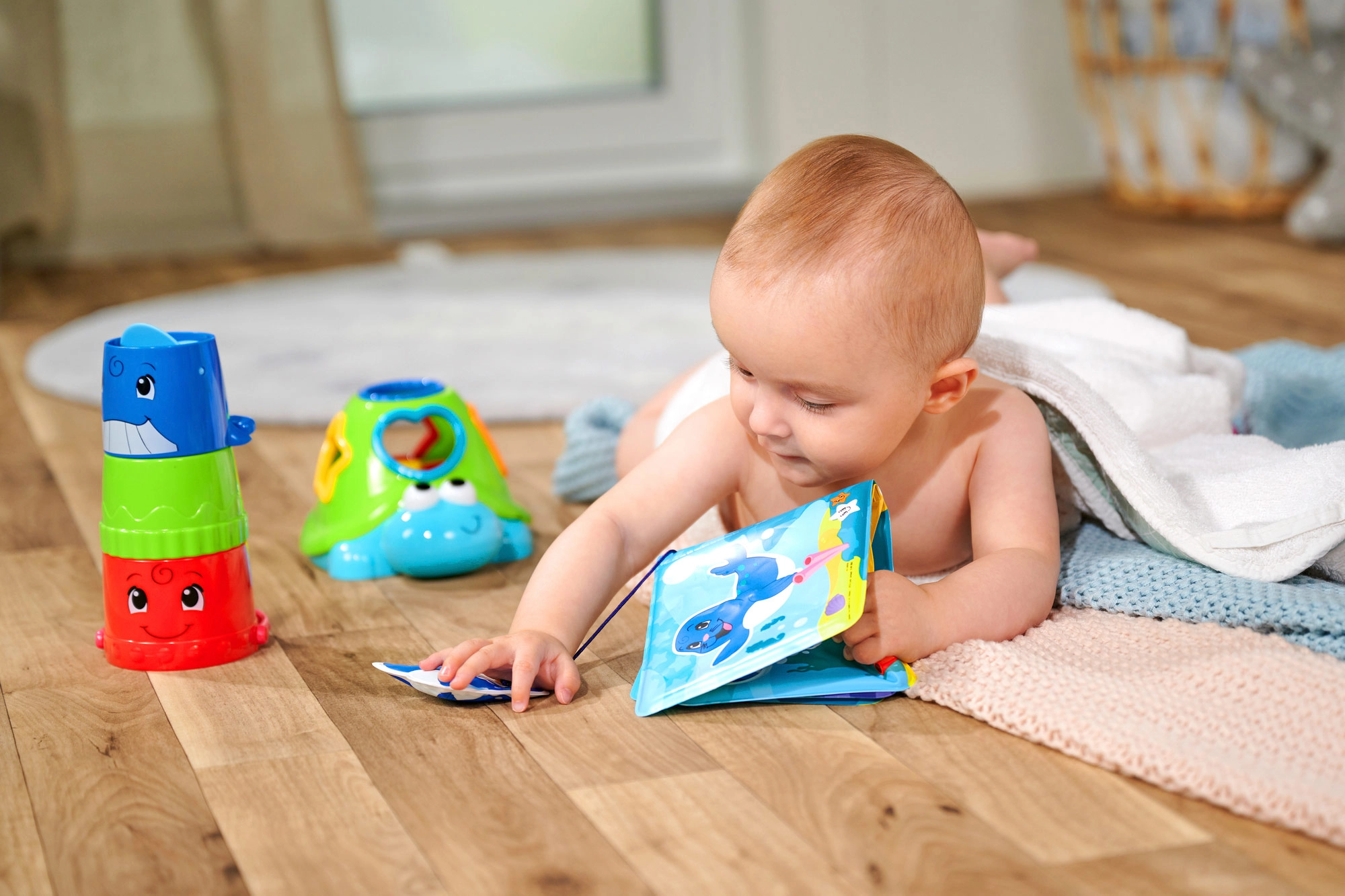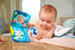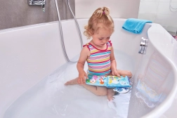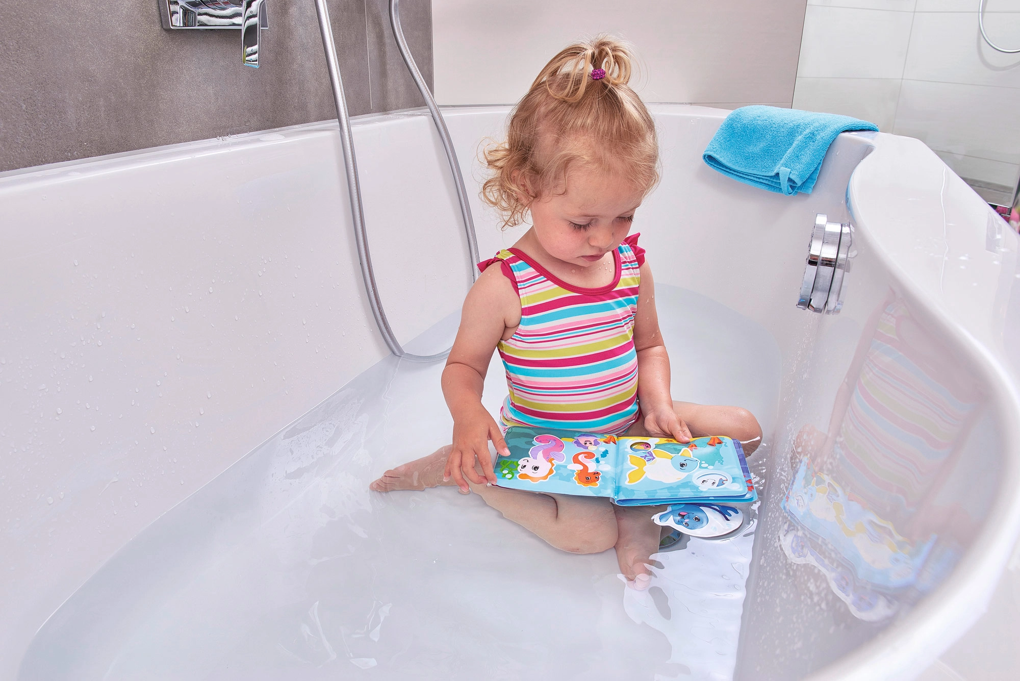 Vieglā konstrukcija peld uz ūdens un ir droša rotaļām vannā vai baseinā. Bērni viegli pāršķir lapas un iepazīst krāsas un formas.
