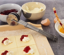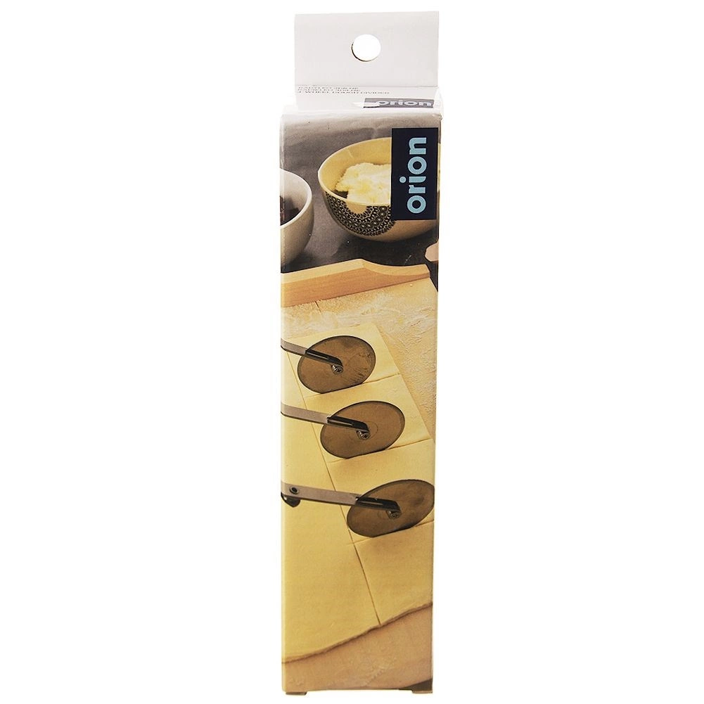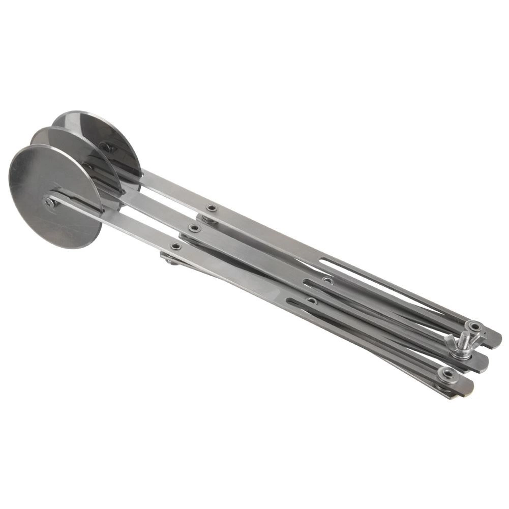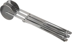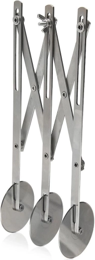 Trīskāršais šķērveida griezējs no nerūsējošā tērauda ir uzticams palīgs gan mājās, gan profesionālai cepšanai. Trīs vienpusēji gludi diski ar diametru 5,5 cm nodrošina tīrus griezumus bez mīklas plēšanas un līpšanas. Garais rokturis sniedz drošu satvērienu un ērtu vadību.