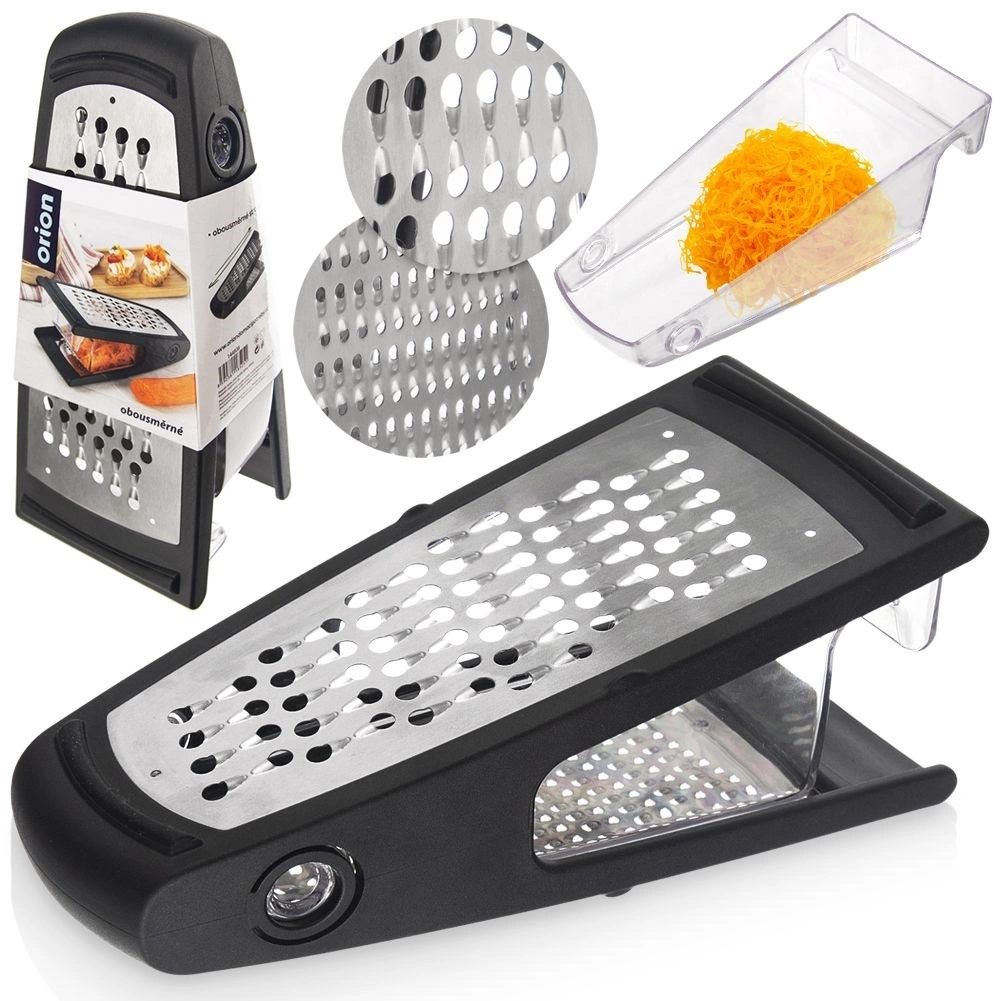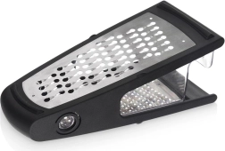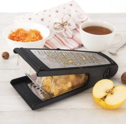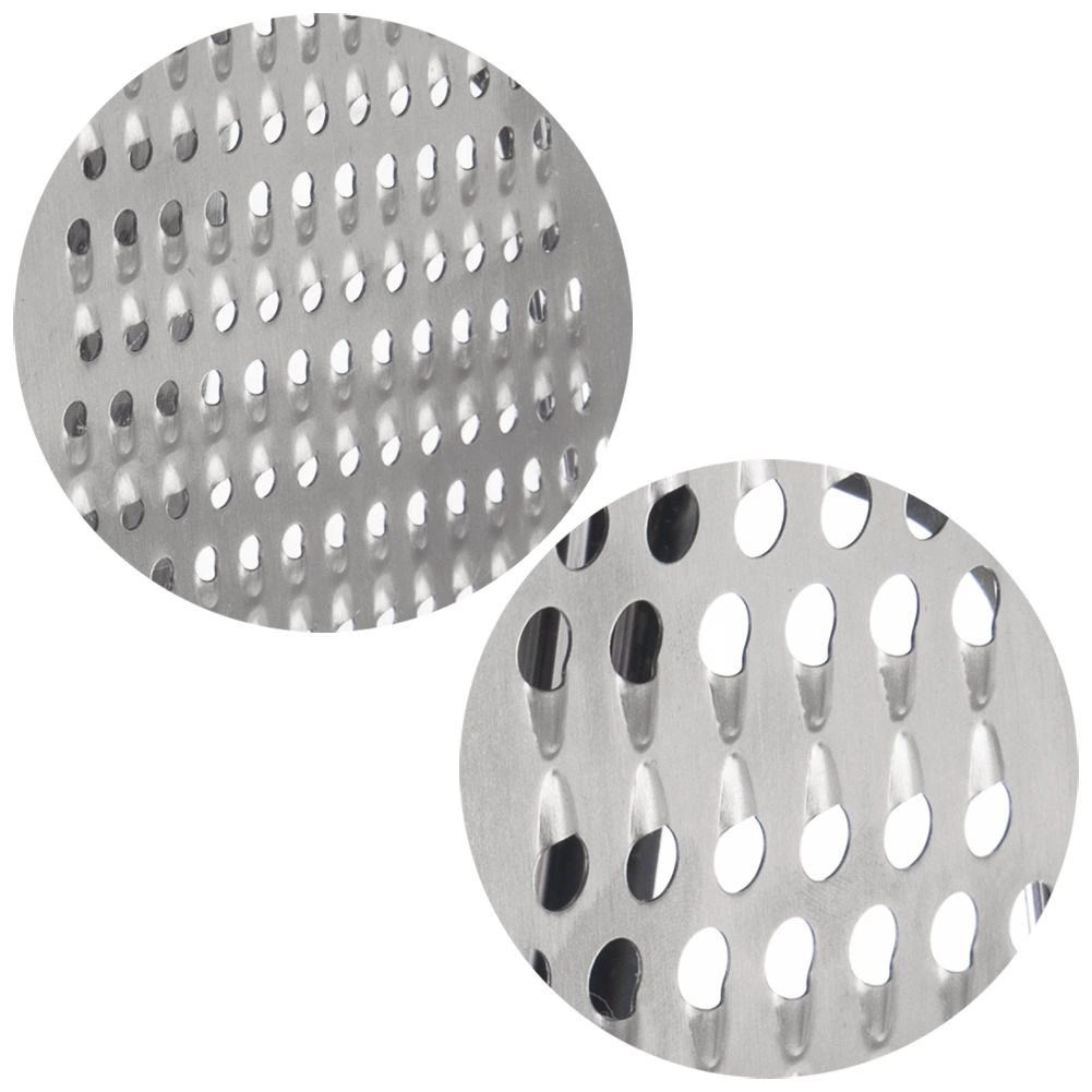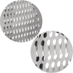 Smalkā 2 mm un rupjā 6 mm puse tiek galā ar dārzeņiem, augļiem, sieriem un šokolādi – no smalkām skaidām līdz lielākiem gabaliņiem.