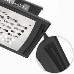 Universāla virtuves rīve ar noņemamu caurspīdīgu trauciņu atvieglo sastāvdaļu sagatavošanu un uztur darba virsmu tīru. Divas dažādas rīvēšanas virsmas nodrošina lielisku rezultātu, rīvējot dārzeņus, augļus, sierus, šokolādi un garšvielas. Stabilie pretbuksēšanas gali neļauj rīvei slīdēt darba laikā.