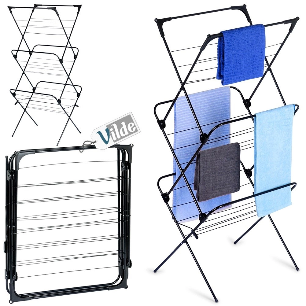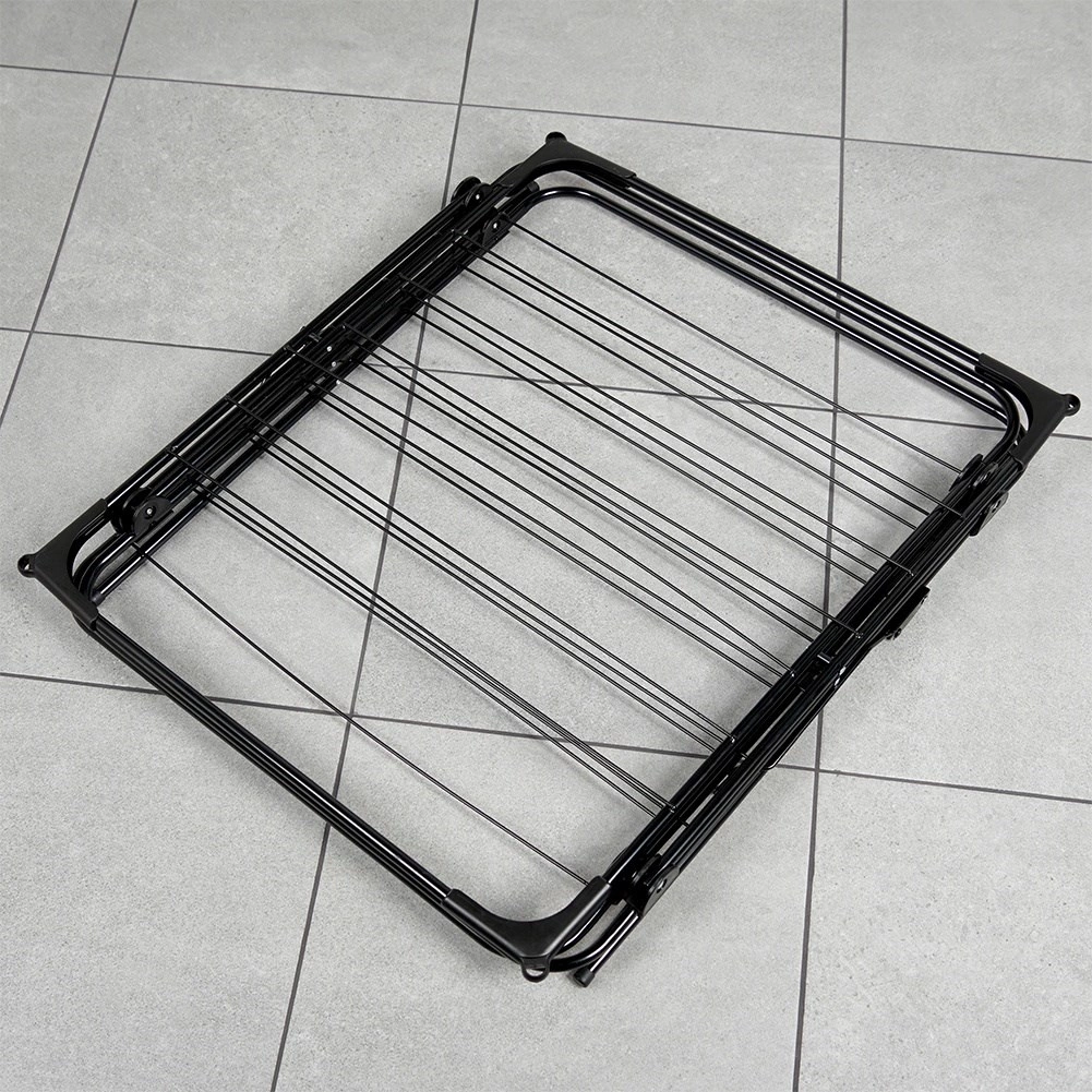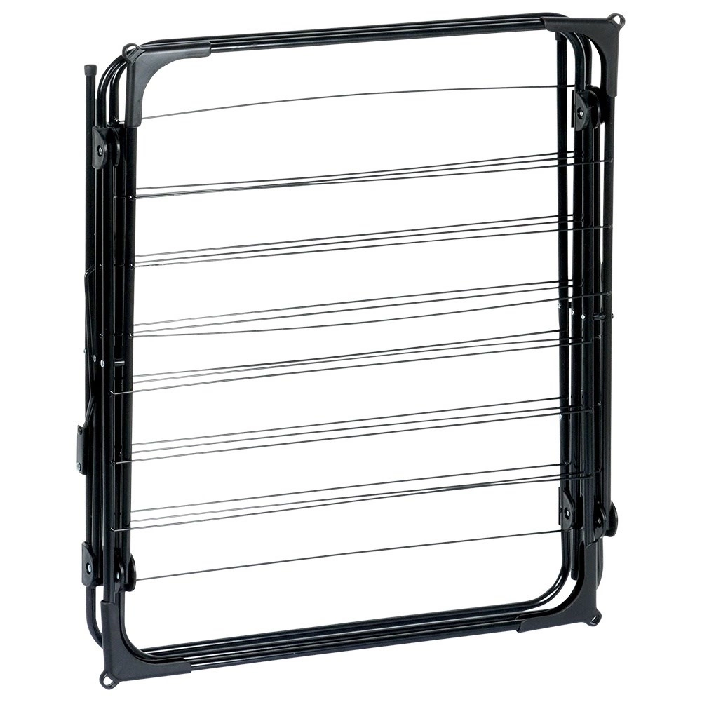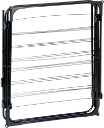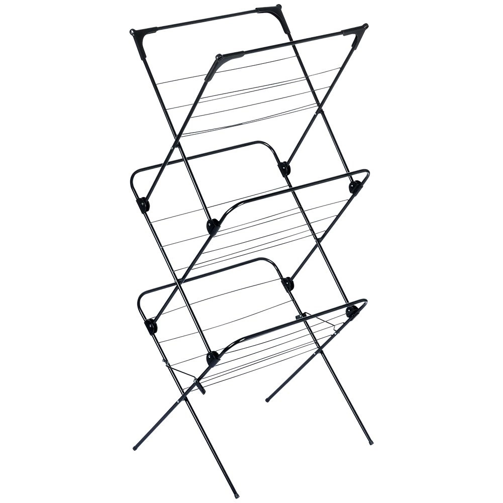 Šis vertikālais veļas žāvētājs elegantā melnā krāsā ir izgatavots no izturīga, pulverkrāsota metāla. Trīs līmeņi nodrošina pietiekami daudz vietas dvieļiem, krekliem un smalkai veļai, savukārt stabilā X konstrukcija garantē drošu lietošanu gan iekštelpās, gan ārā.