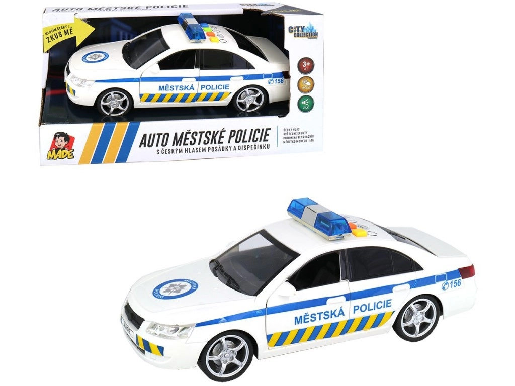 Šī detalizēti veidotā pilsētas policijas automašīna nodrošina autentisku policijas dienesta pieredzi. Bērni izbaudīs dinamiskas rotaļas ar bākuguns gaismas efektiem un reālistiskiem čehu paziņojumiem, piemēram, dispečera norādījumiem un ekipāžas ziņojumiem. Piemērota gan patstāvīgai spēlei, gan kopīgiem piedzīvojumiem.
