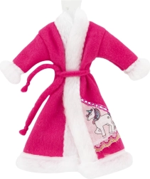 Stilīgs leļļu halātiņš ar samtaini maigu virsmu un sējamu jostu sasilda pēc vannas un vakara rituālu laikā. Pieejams dažādu krāsu un motīvu miksā (piem., vienradzis), viegli kombinējams ar citiem apģērbiem.