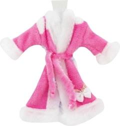 Halātiņam ir apdare no maigas mākslīgās kažokādas, ērts piegriezums ar platākām piedurknēm un tas der parasta izmēra vidēja lieluma lellēm. Lielisks papildinājums bērnu istabai, kas veicina fantāziju un lomu spēles.
