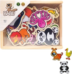 Komplektā atradīsiet tādus dzīvniekus kā žirafu, delfīnu, pingvīnu un citus daudzveidīgus radījumus. Magnētiņi ne tikai izklaidē, bet arī izglīto, un ir lielisks līdzeklis dzīvnieku un krāsu atpazīšanas attīstīšanai.
