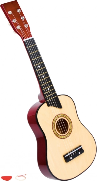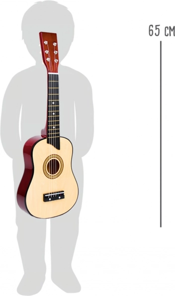 Šī dabīgā koka ģitāra ir lieliska izvēle mazajiem mūziķiem. Pateicoties neilona stīgām, tā ir patīkama pieskārienam un piedod bērnu pirmos soļus. Jūs iegūsiet visu nepieciešamo pirmajiem toņiem – plektru un rezerves stīgu.