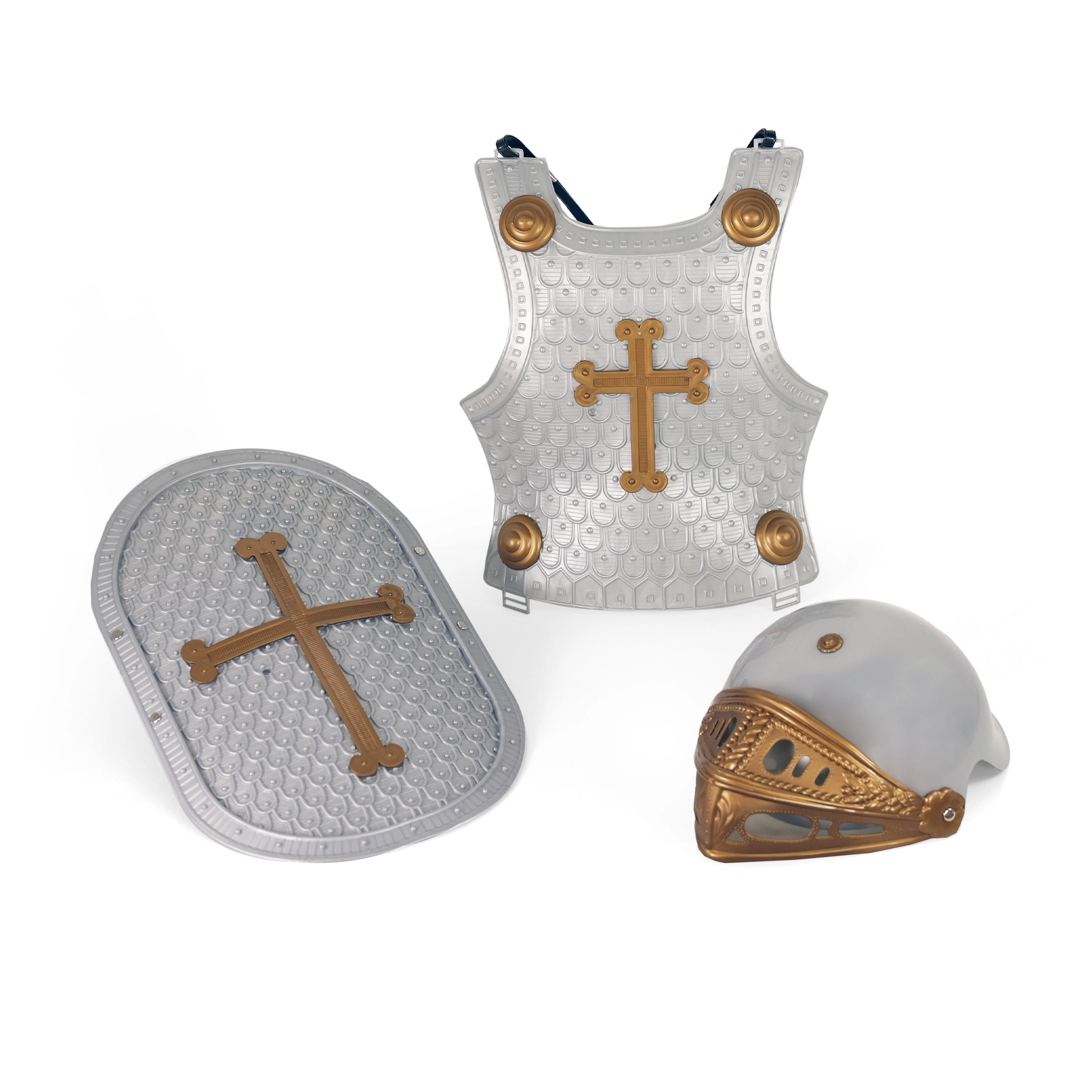 Komplektā ir viss, kas mazajiem bruņiniekiem nepieciešams, lai piepildītu savus varonīgos sapņus – zobens ar maksti, vairogs, ķivere un veste.