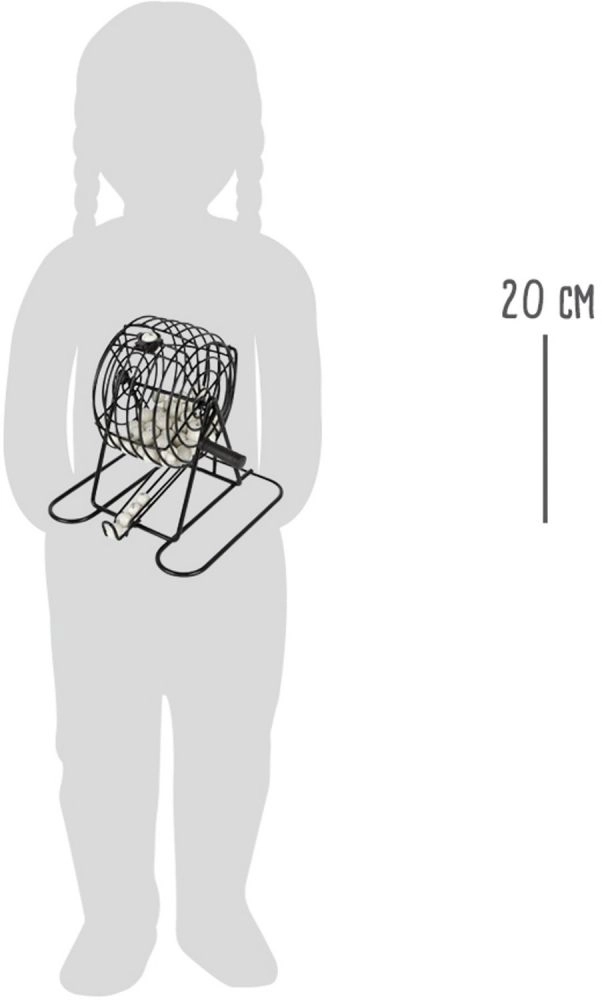 Atklājiet laikmetīgu ģimenes izklaidi ar bingo, kas iepriecinās gan mazus, gan lielus spēlētājus. Izturīgās metāla izložu bungas tiek darbinātas ar kloķi un nodrošina vienmērīgu bumbiņu jaukšanu, savukārt plastmasas turētāji uztur kārtību visas spēles laikā. Pateicoties krāsainajiem žetoniem, katram spēlētājam ir skaidrs pārskats par saviem gājieniem un laimējošajām kombinācijām.