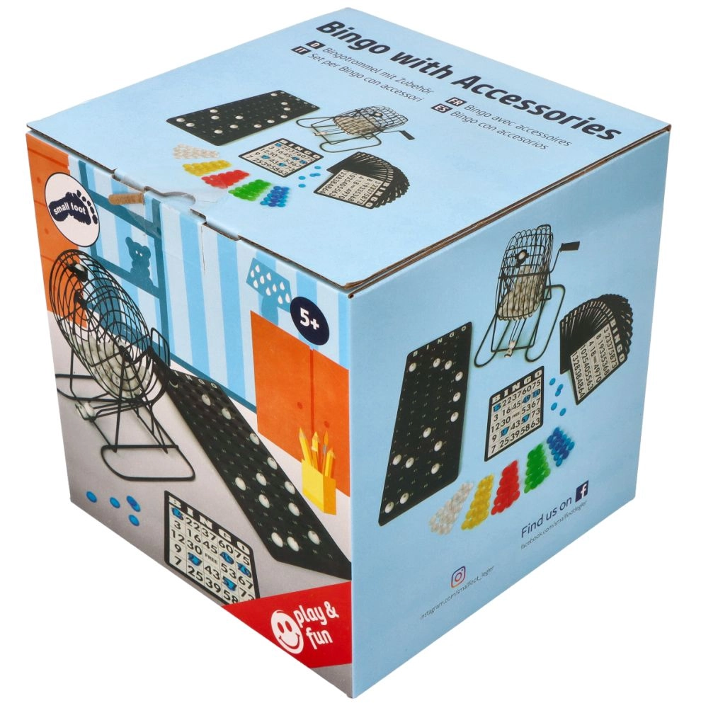 Izbaudiet klasisku galda izklaidi ar pilno Small Foot Bingo komplektu. Komplektā ir metāla izložu bungas, krāsaini žetoni, balti numurēti bumbiņi un praktiski plastmasas turētāji. Spēlētāji izvēlas žetonu krāsu, griež kloķi un vēro, kura bumbiņa iekrīt nodalījumā – uzvar tas, kurš pirmais izveido pareizo kombināciju. Lieliska spēle bērniem un pieaugušajiem, kas attīsta skaitļu atpazīšanu un sniedz gan spriedzi, gan kopīgas spēles prieku.