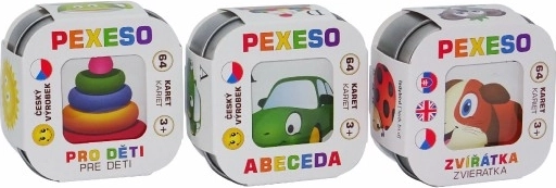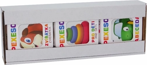Peksešo ir viena no iecienītākajām bērnu spēlēm, kas turklāt palīdz bērnu attīstībā. Šajā komplektā ir trīs dažādas peksešo spēles metāla kārbiņās, vērstas uz alfabētu, dzīvniekiem ar angļu valodu un spēlēm bērniem.