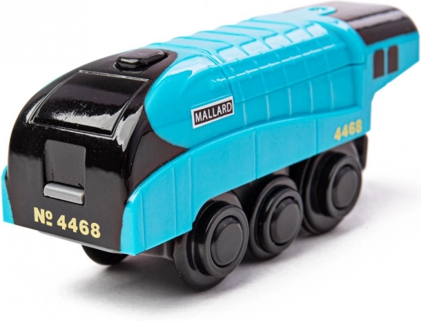 Elektriskā lokomotīve Mallard izceļas ne tikai ar savu izteiksmīgo zilo dizainu, bet arī ar spēju vilkt papildu vagonus, pateicoties magnētiskajai sistēmai. Vienkāršā vadība ar vienu pogu uz skursteņa pārsteigs ar savu vienkāršību. Vilcieniņu darbina 2 AAA baterijas, kas nav iekļautas iepakojumā.
