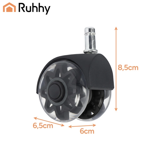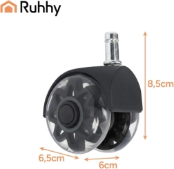 Nomainiet vecos riteņus pret modernajiem un klusajiem RUHHY 2,5" riteņiem. Tie nodrošina klusu darbību (zem 25 dB), vienmērīgu 360° kustību un grīdas aizsardzību bez skrāpējumiem pateicoties mīkstajam PU protektoram. Universāls tapis 11 × 22 mm un ātra montāža bez instrumentiem padara tos par ideālu izvēli laminātam, parketam, flīzēm un paklājam.