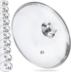 Universāls stikla vāks ar diametru 32 cm ar nerūsējošā tērauda malu un rokturi droši der katliem un pannām. Karstumizturīgais caurspīdīgais stikls ļauj kontrolēt gatavošanu bez pacelšanas, ventilācijas atvere izvada lieko tvaiku, bet viegls izliekums veicina siltuma cirkulāciju. Pateicoties ciešai piegulšanai, gatavošana paātrinās un samazinās šļakstīšanās.