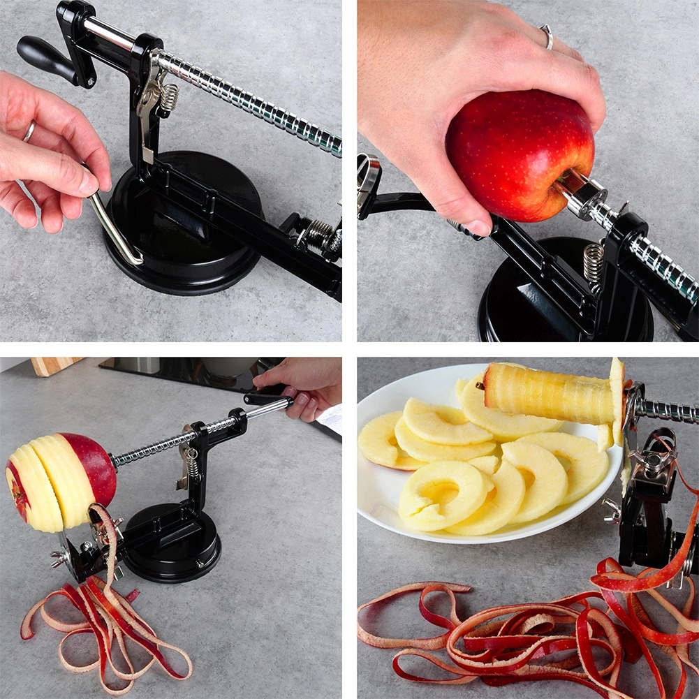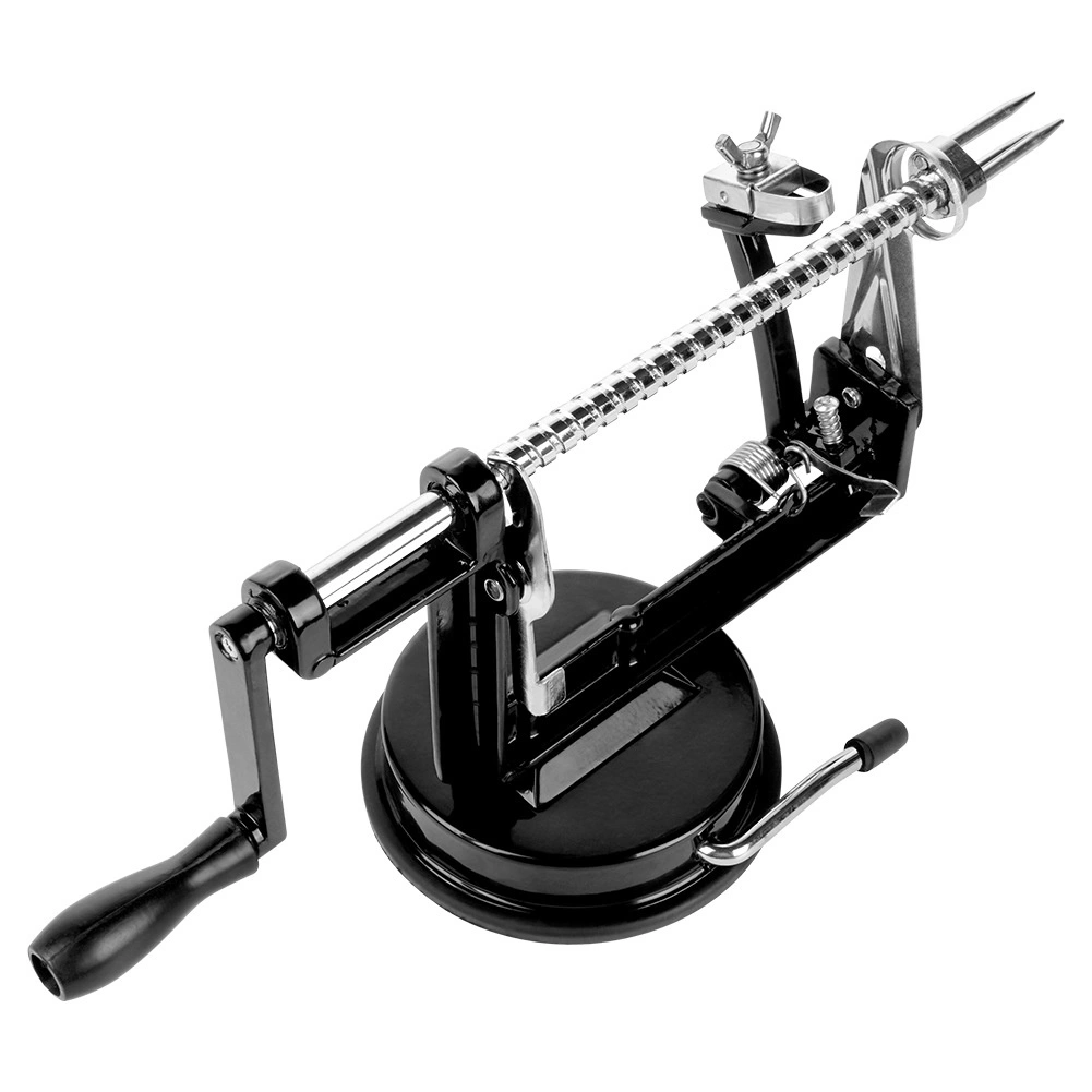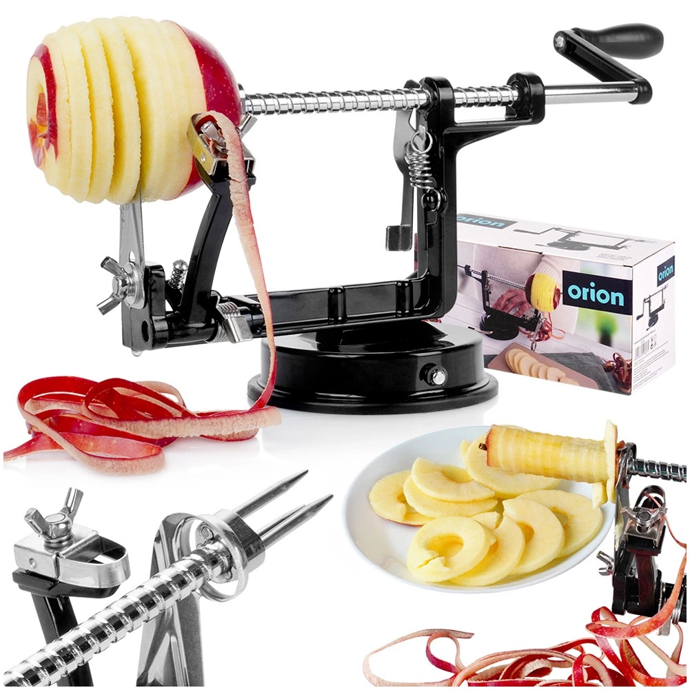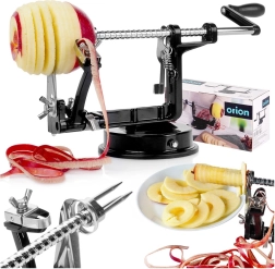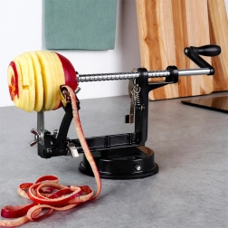 Praktisks virtuves palīgs, kas vienā darbībā nomizo, izgriež serdi un sagriež ābolus, bumbierus vai kartupeļus efektīgās spirālēs. Pateicoties precīzai vadotnei un asiem nažiem, iegūsiet regulāras šķēles, ideālas štrūdeliem, kraukšķīgiem čipsiem, žāvēšanai vai dekoratīvai pasniegšanai.
