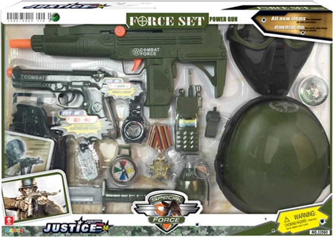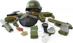 Sniedziet bērniem aizraujošus piedzīvojumus ar pilnu militāro komplektu ar ķiveri, pistoli un bagātīgu piederumu klāstu reālistiskai karavīru spēlei. Komplekts veicina radošumu, lomu spēles un iztēli, un ir ideāli piemērots mazajiem pētniekiem. Pistoles efekti darbojas ar 2× 1,5 V AG13 baterijām (nav iekļautas komplektā).