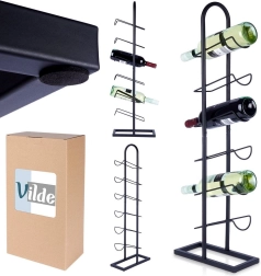 Šis brīvi stāvošais vīna statīvs apvieno minimālistisku dizainu ar praktisku pielietojumu. Izturīga metāla konstrukcija ar matēti melnu pārklājumu iederas gan modernā, gan klasiskā interjerā un nodrošina drošu, pārskatāmu līdz sešu pudeļu uzglabāšanu.