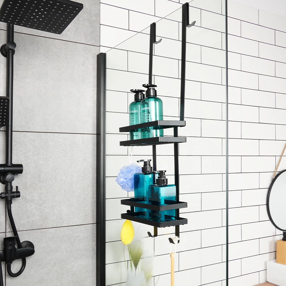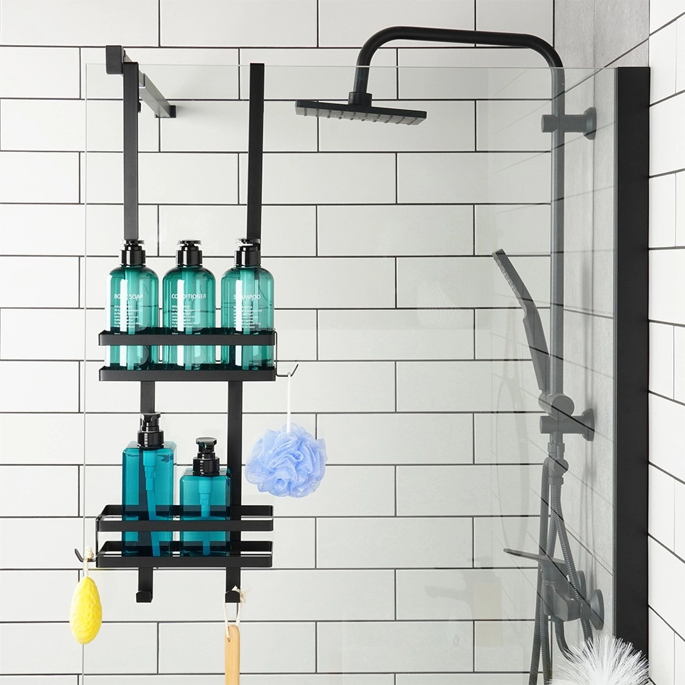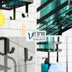 Uzturiet dušas zonu pārskatāmu un stilīgu. Piekaramais plaukts industriālā lofta dizainā piedāvā divus uzglabāšanas līmeņus šampūniem, kondicionieriem un ziepēm, savukārt četri praktiski āķi noder sūkļiem, birstēm vai skuvekļiem. Pulverkrāsots metāls melnā krāsā ir izturīgs un noturīgs pret koroziju, lieliski piemērots ikdienas lietošanai.