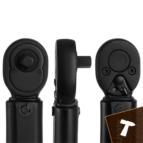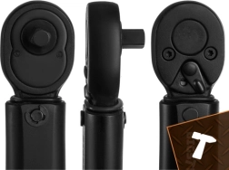 Robusta galva ar virziena pārslēgšanu un ātrās atbrīvošanas mehānismu uzticamai pievilkšanai un atskrūvēšanai. Klikšķa mehānisms skaidri signalizē sasniegto momentu.