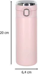 Stilīga rozā termokrūze ar 420 ml tilpumu ilgi uzturēs dzērienus gan siltus, gan aukstus un piedāvā ērtu izvelkamu vāku ar pogas mehānismu. Vāka augšpusē ir LED displejs ar temperatūras mērījumu, kas ar krāsu indikāciju brīdina, vai dzēriens ir pārāk karsts (sarkans) vai ideāli silts (zaļš). Pateicoties 304 nerūsējošajam tēraudam, krūze ir izturīga un piemērota ikdienas lietošanai.