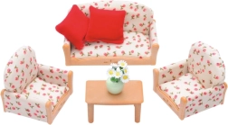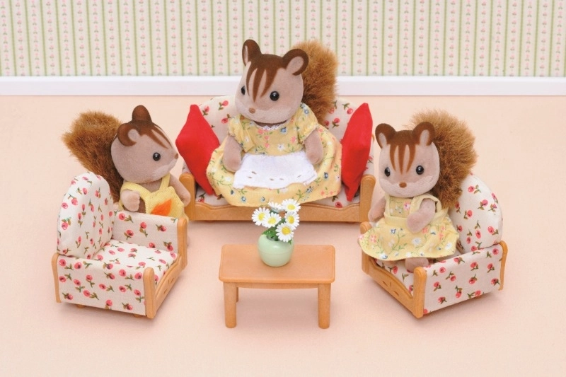Izveidojiet mājīgu sylvanian stila viesistabu ar stilīgu sēdvietu komplektu, kas apvieno romantisku ziedu dizainu ar detalizēti veidotiem rāmjiem, kas imitē koku. Komplekts ir ideāli piemērots SYLVANIAN FAMILIES mājiņām un spēļu ainām un to ir viegli kombinēt ar citām komplektācijām un aksesuāriem.