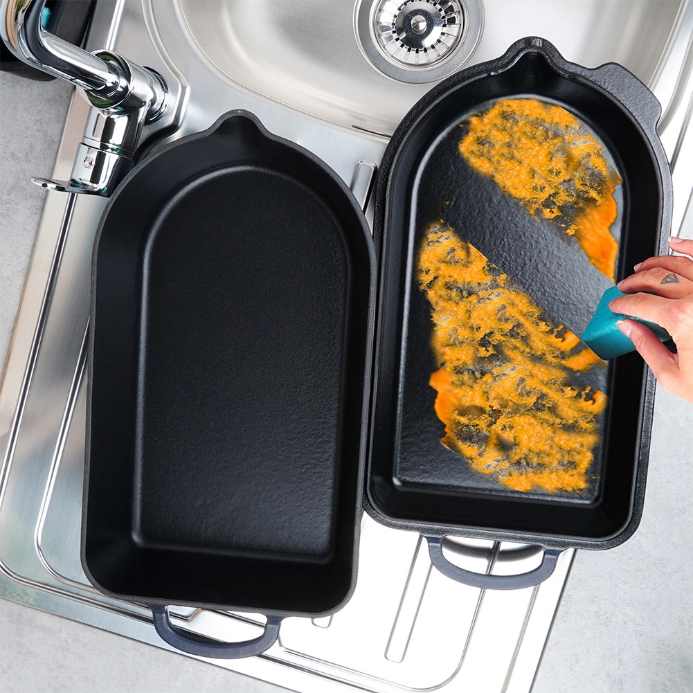Biezsienu čuguns ar gludu emalju lieliski vada un saglabā siltumu. Pārklājums samazina piedegšanu un padara tīrīšanu ātru un ērtu.