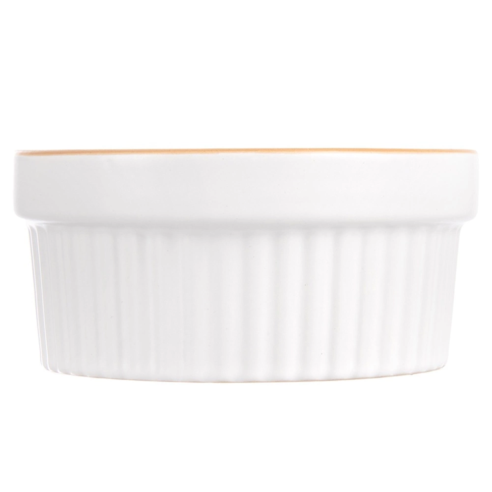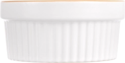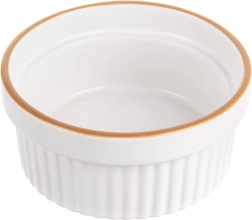 Praktiska keramikas bļodiņa zapekšanai ar tilpumu 290 ml un diametru 11,5 cm ir ideāli piemērota crème brûlée, suflē, mini zapekumiem un desertiem. Izturīga keramika ar baltu glazūru un brūnu apmali nodrošina vienmērīgu izcepšanos un elegantu pasniegšanu. Piemērota cepeškrāsnij (līdz 200 °C), mikroviļņu krāsnij un trauku mazgājamajai mašīnai.