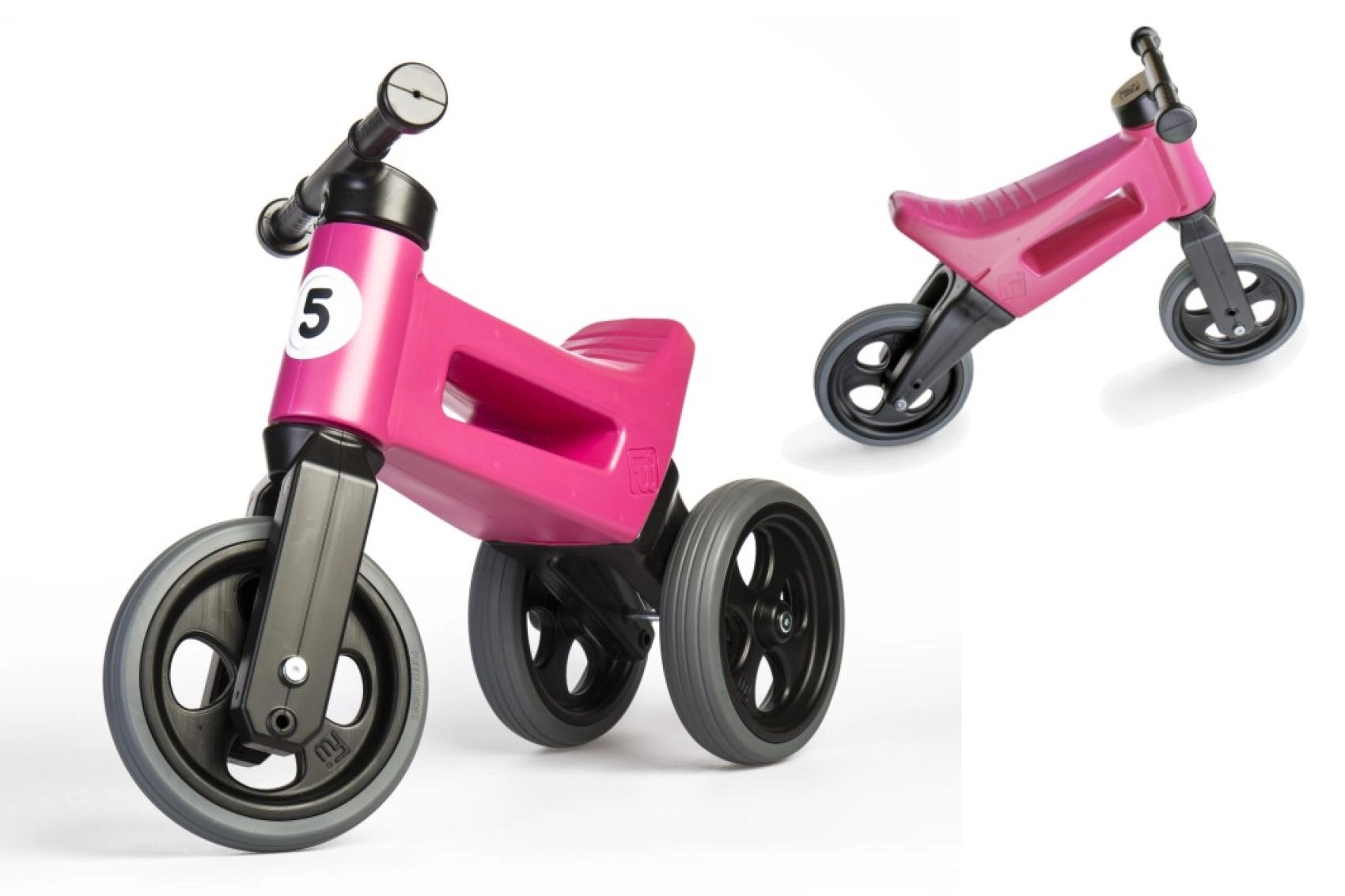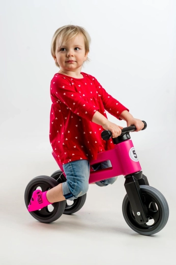 Vieglie un stabili balansrati FUNNY WHEELS Rider Sport 2‑in‑1 aug līdzi jūsu bērnam – trīsriteni var viegli pārvērst par divriteni un iestatīt divus sēdekļa augstumus 28/30 cm. Klusas pretizslīdes riepas, drošas detaļas un nestspēja 25 kg padara šos čehu balansratus par lielisku izvēli līdzsvara un koordinācijas treniņiem no 18 mēnešu vecuma.