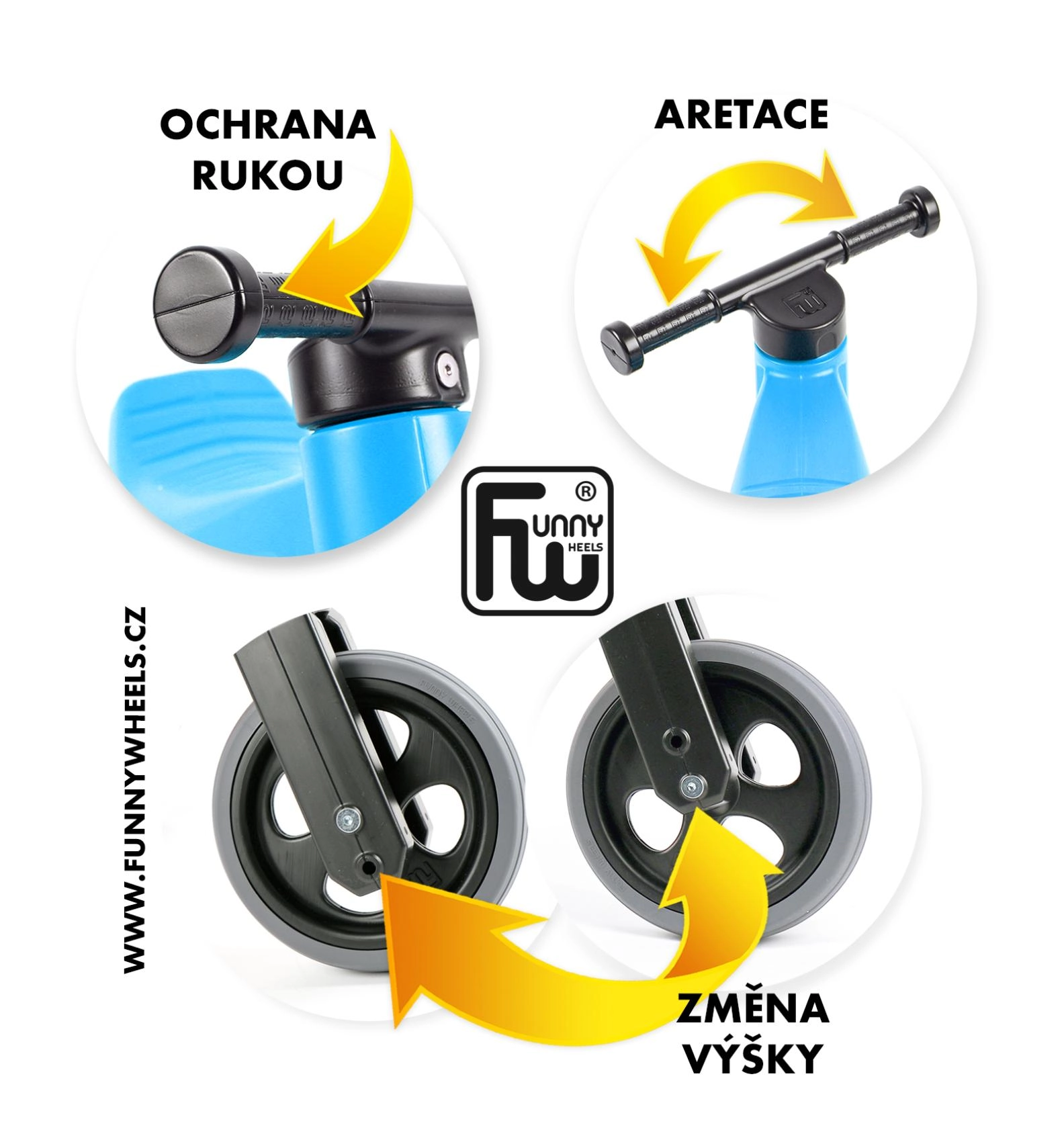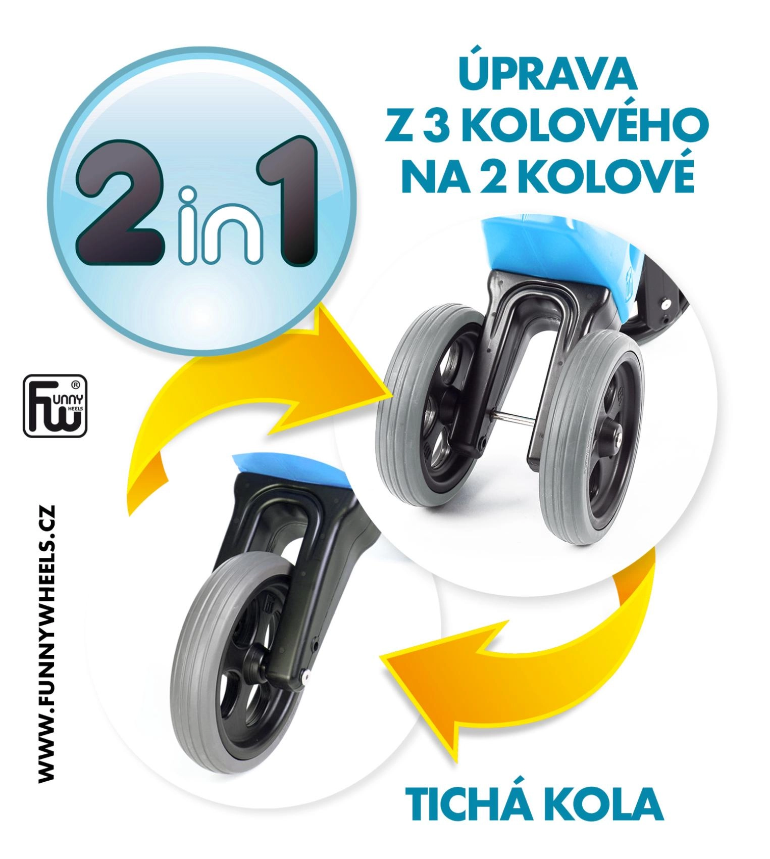FUNNY WHEELS Rider Sport 2in1 ir lieliska izvēle jūsu bērna pirmajiem izbraucieniem. Sākumā stabils uz trim riteņiem, vēlāk viegli pārvēršams par divriteni līdzsvara trenēšanai. Pateicoties divām sēdekļa augstuma pozīcijām, braucamais kalpo ilgāk un atbalsta dabisku motorikas un koordinācijas attīstību.