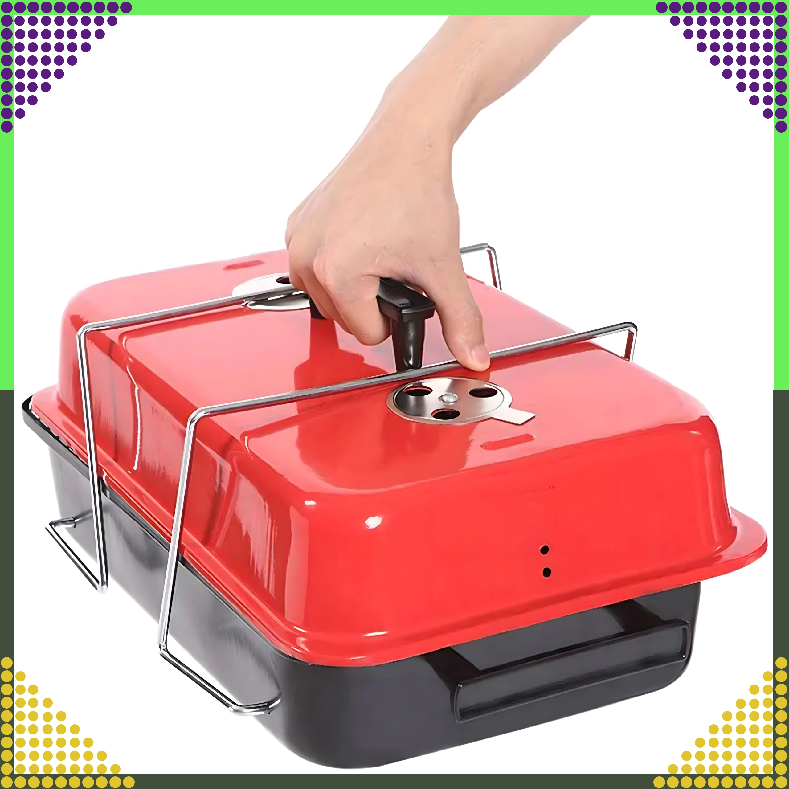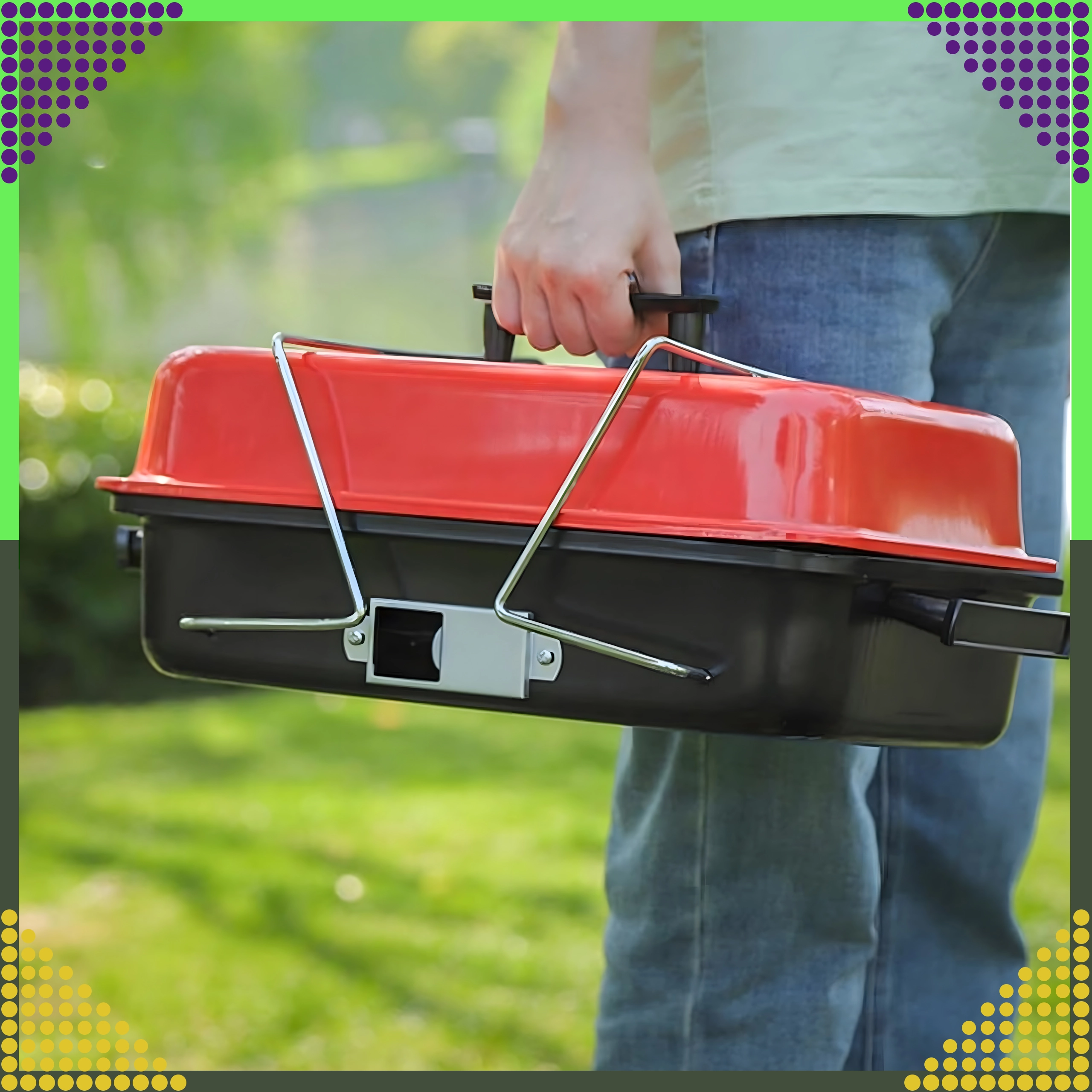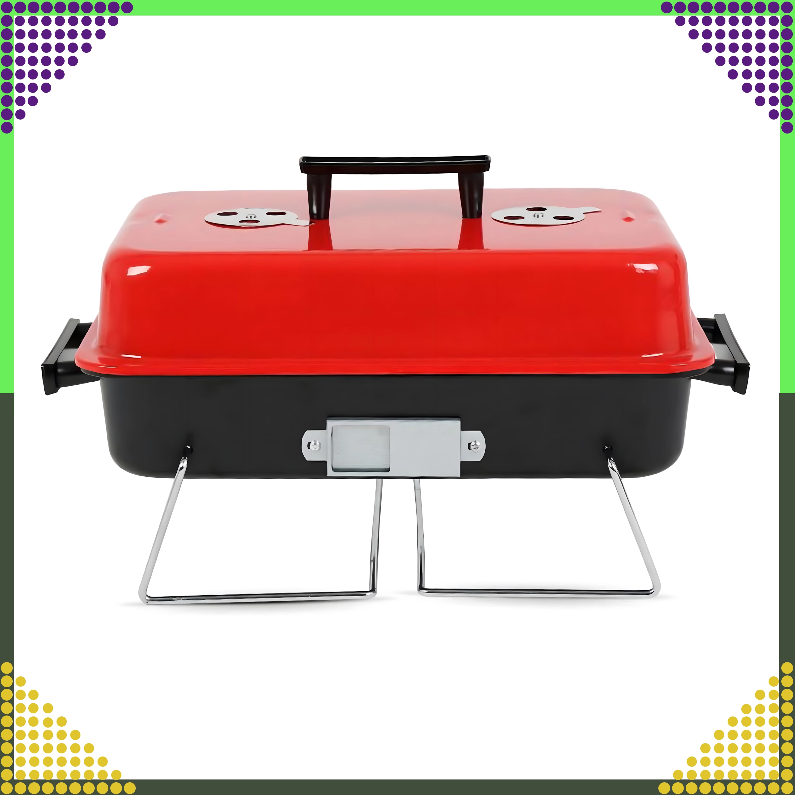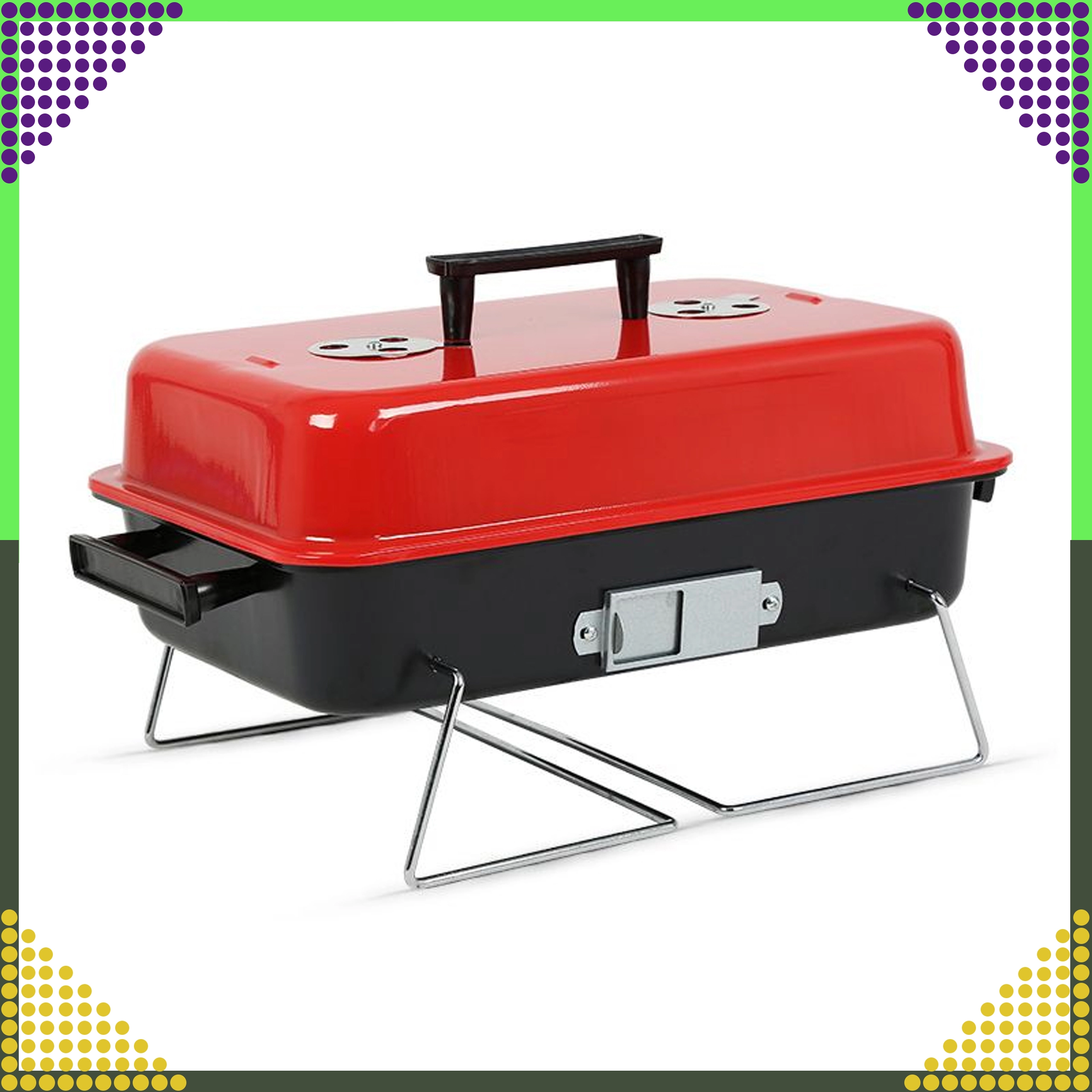 Saliekamās kājas un nofiksēts vāks nodrošina ērtu pārnēsāšanu un glabāšanu – ideāli kempingam, piknikam un ceļošanai ar auto.