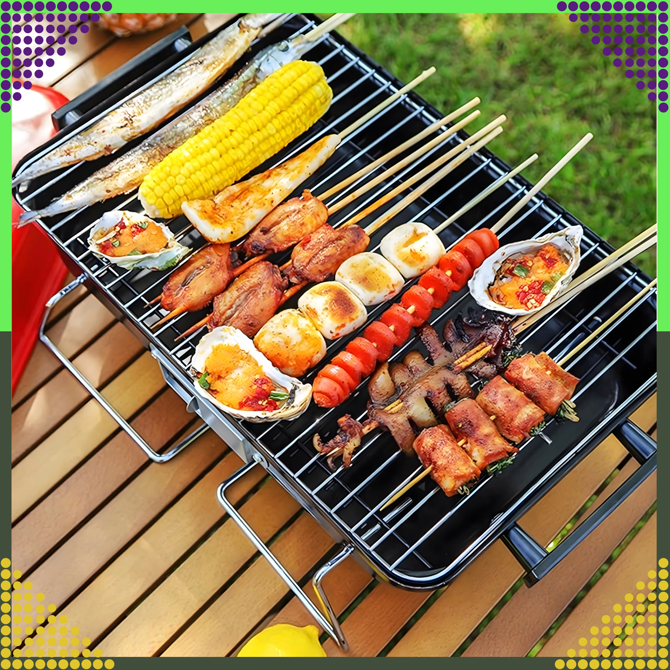 - galda pārnēsājams kokogļu grils
