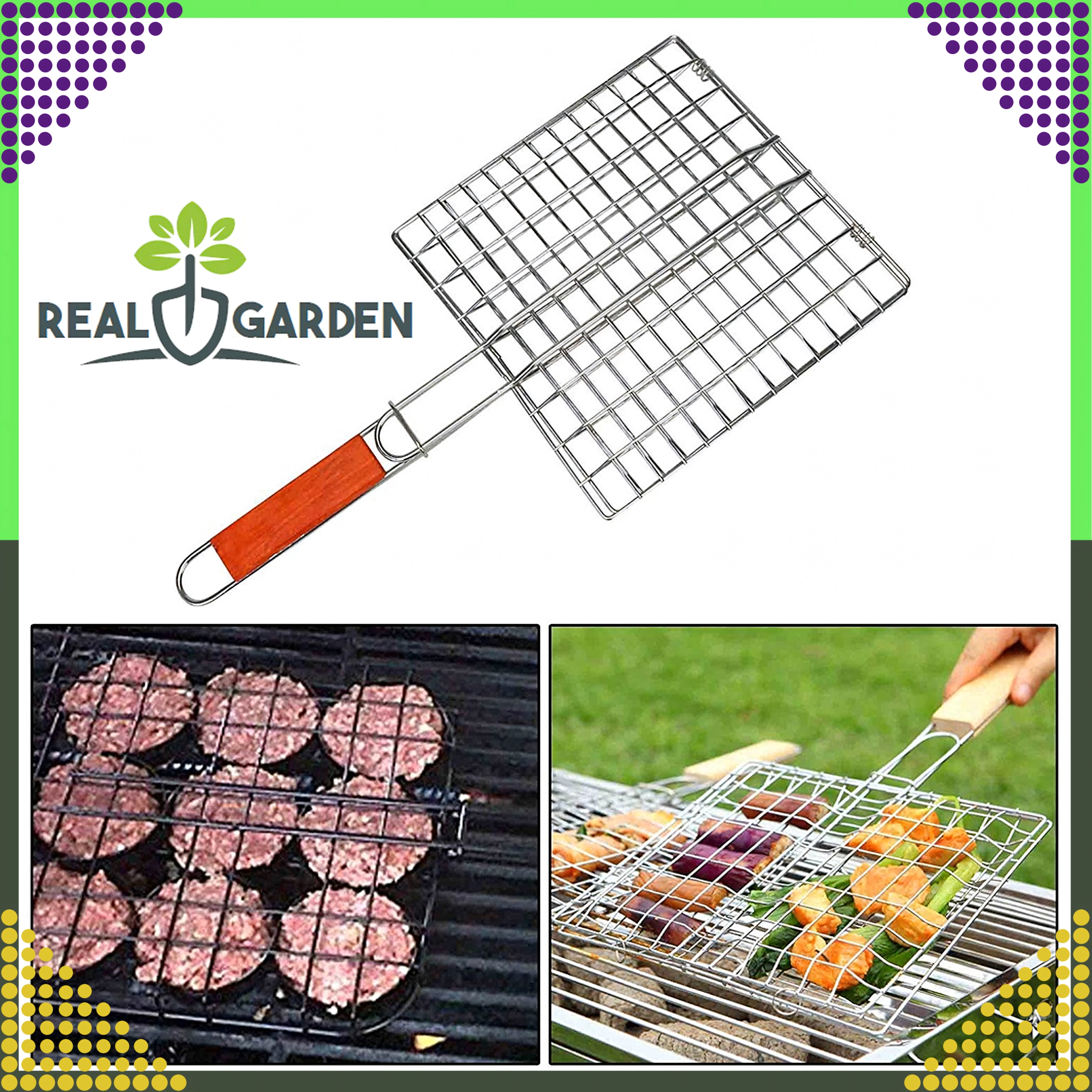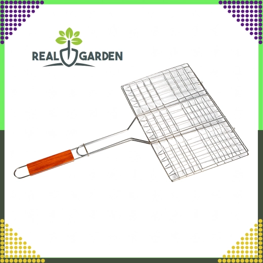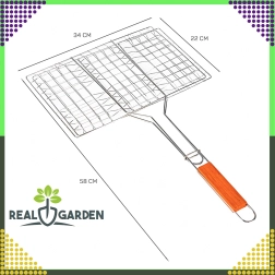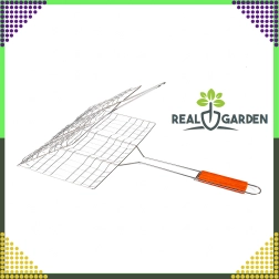 Praktisks divpusējs grilēšanas režģis ar aizslēdzamu sietu un koka rokturi drošai un ērtai pagriešanai. Ideāli piemērots burgeriem, gaļai, zivīm un dārzeņiem. Hromēta virsma atvieglo tīrīšanu, un stabila saspiešana novērš produktu izjūkšanu grilēšanas laikā.