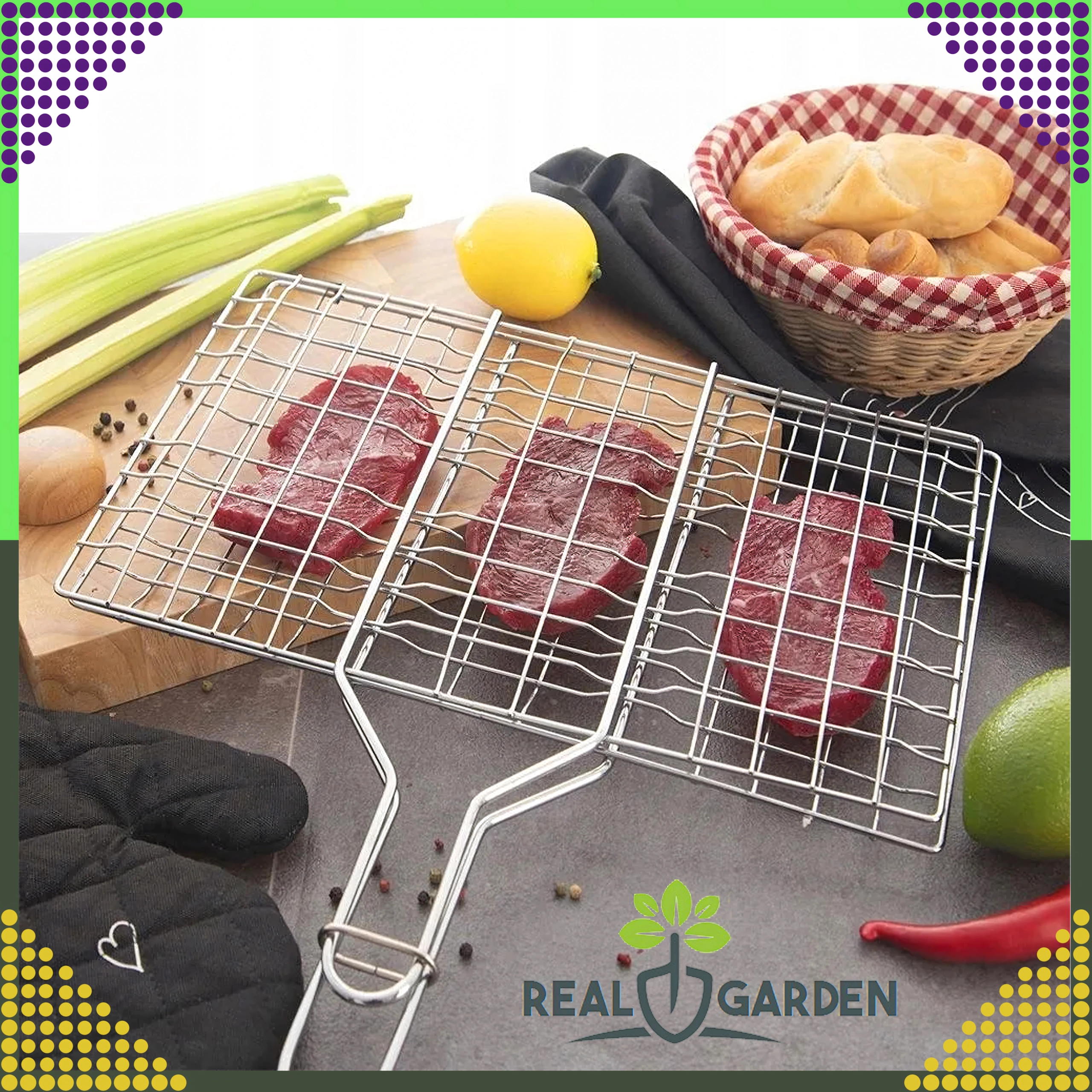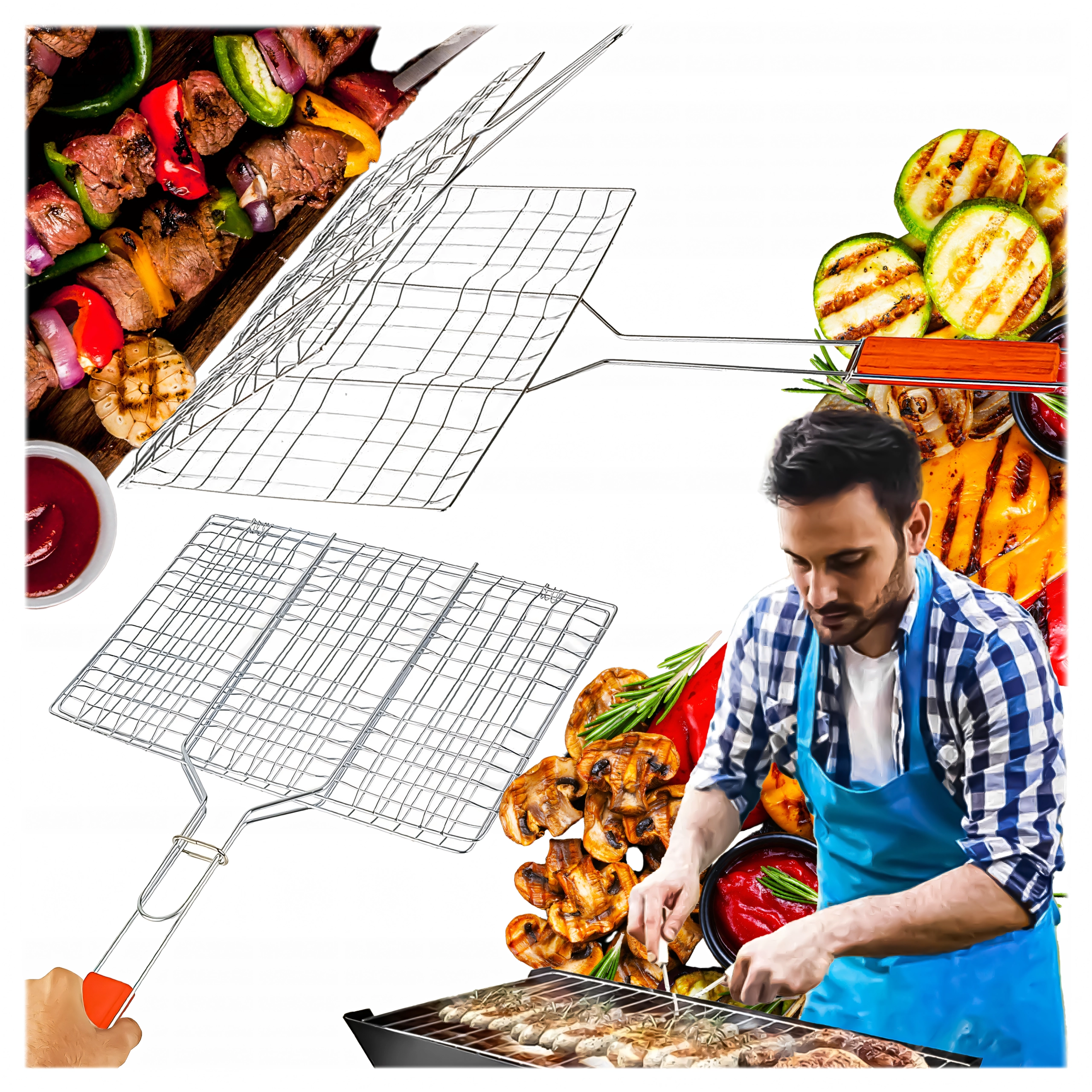 - Divpusējs saliekams grilēšanas režģis ar aizslēdzamu sietu