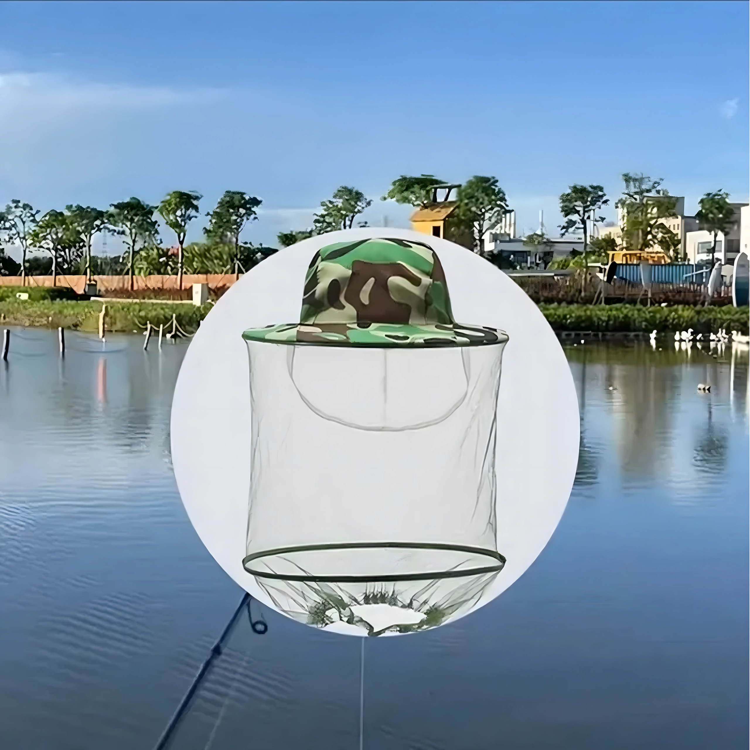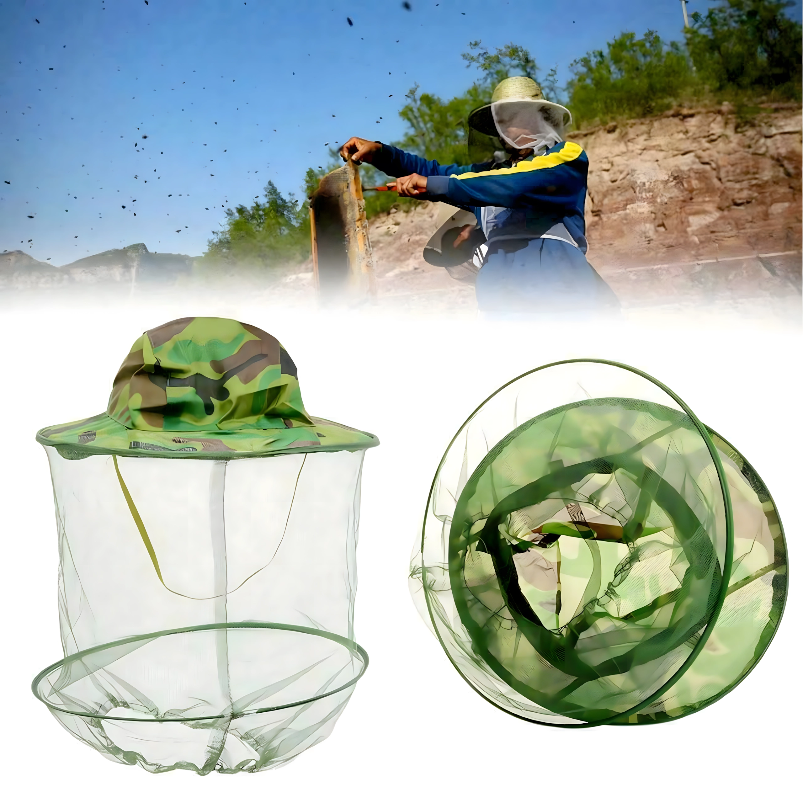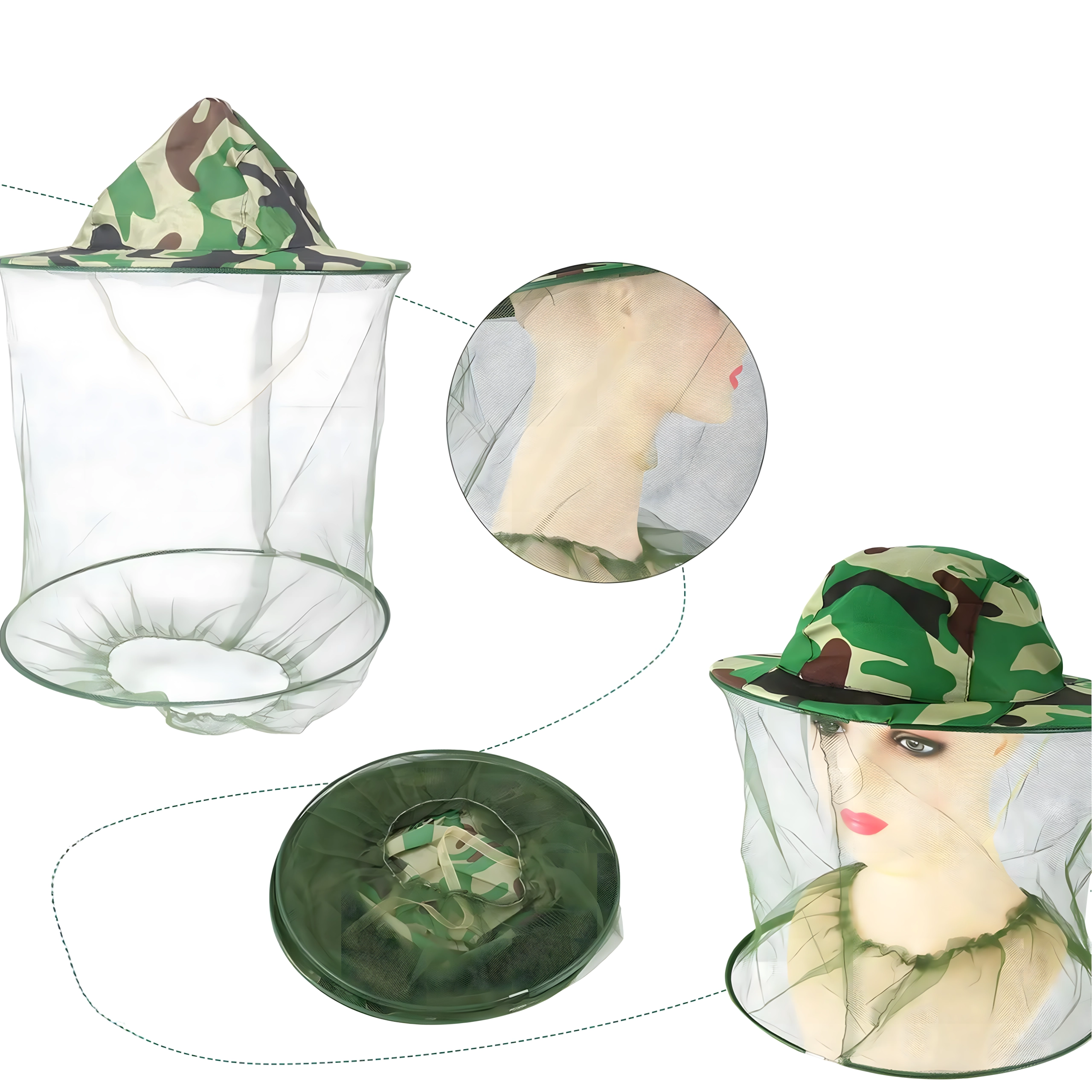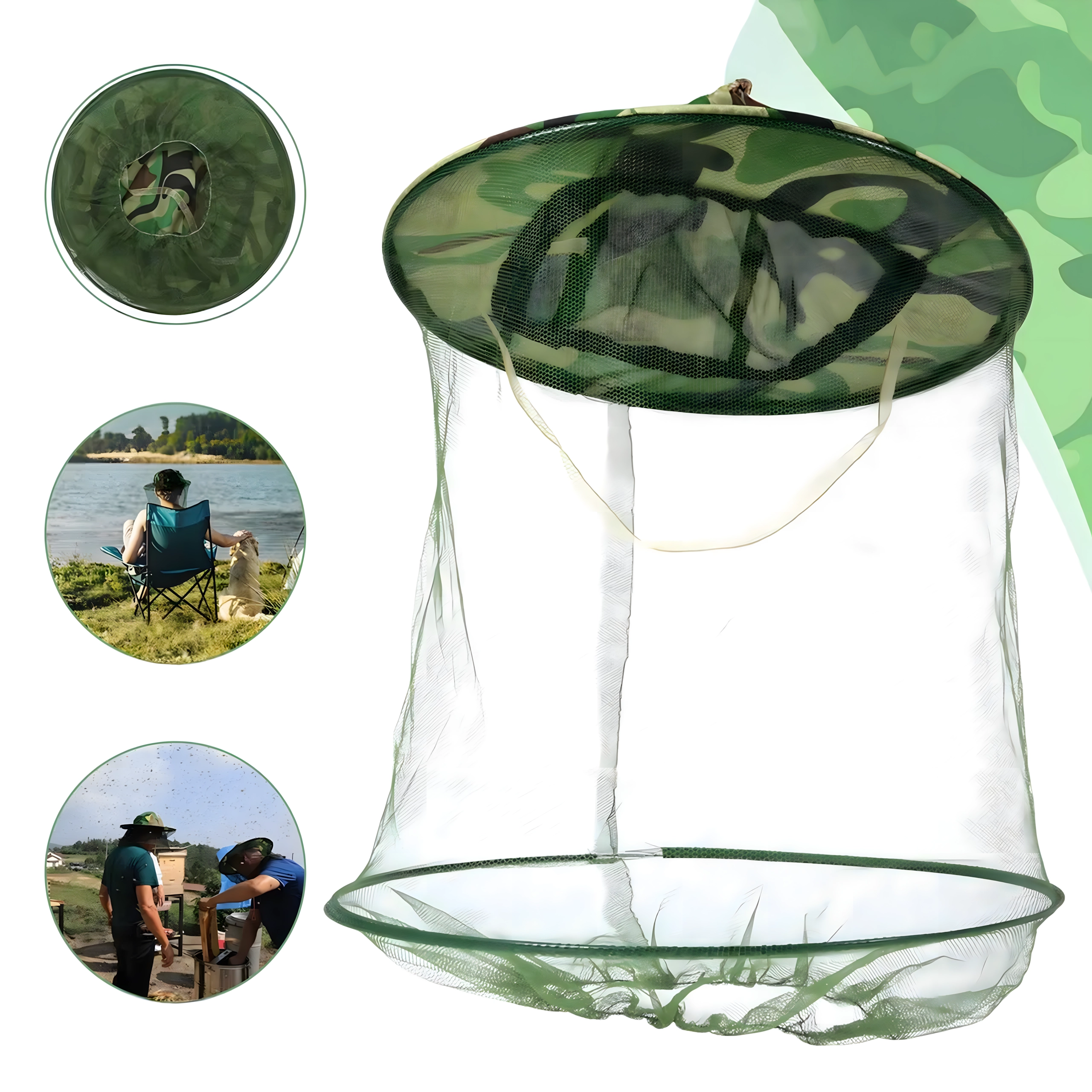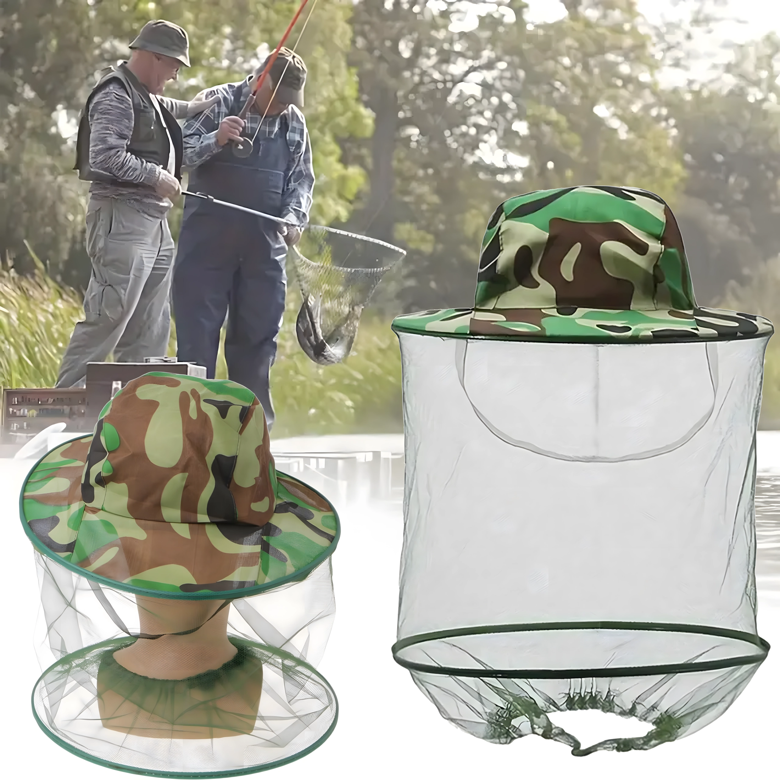 Plata mala tur tīklu tālāk no sejas, un kamuflāžas raksts ir piemērots makšķerniekiem, medniekiem un āra aktivitāšu cienītājiem.