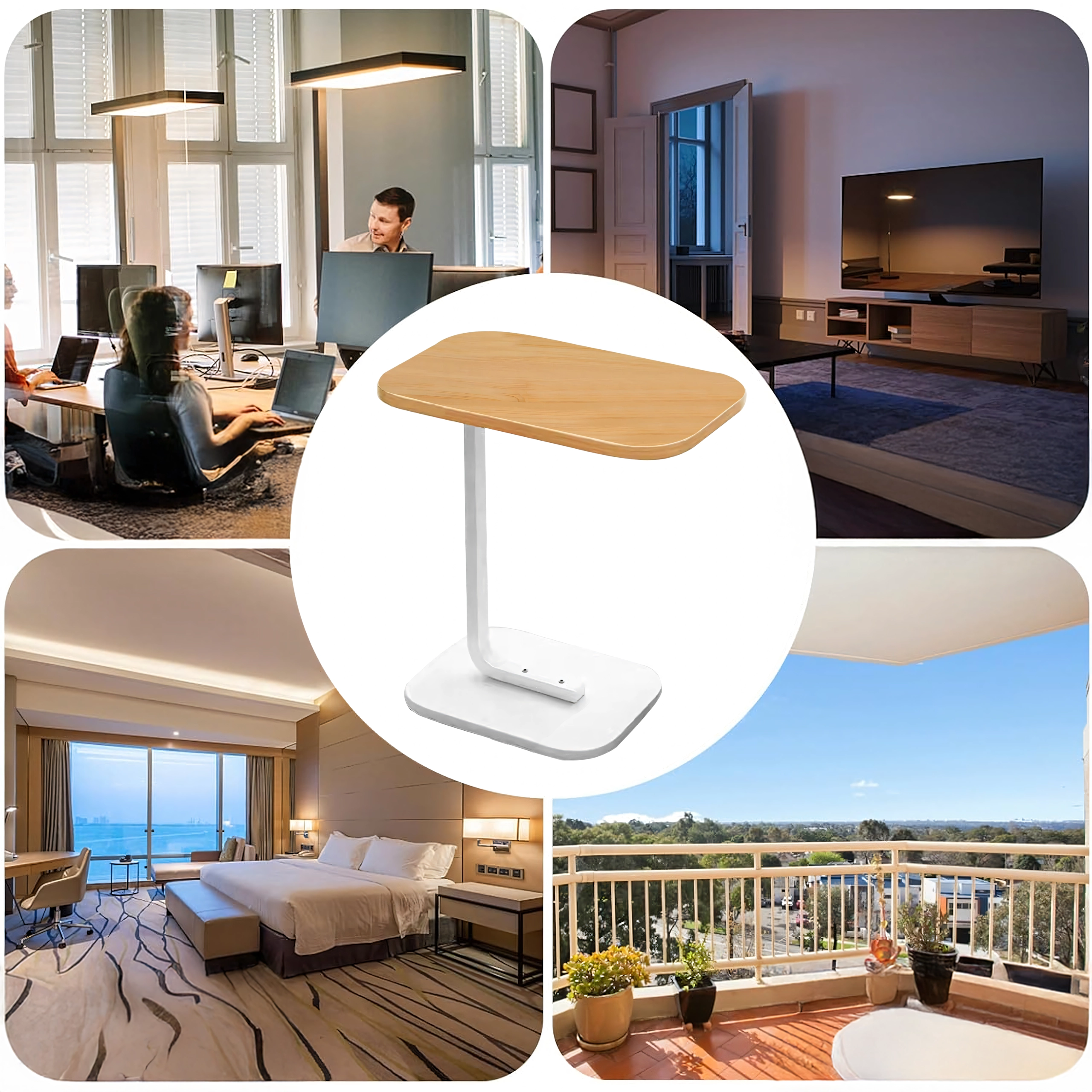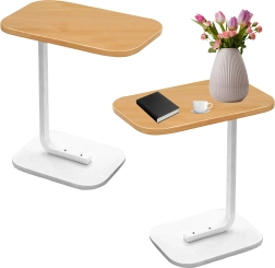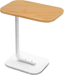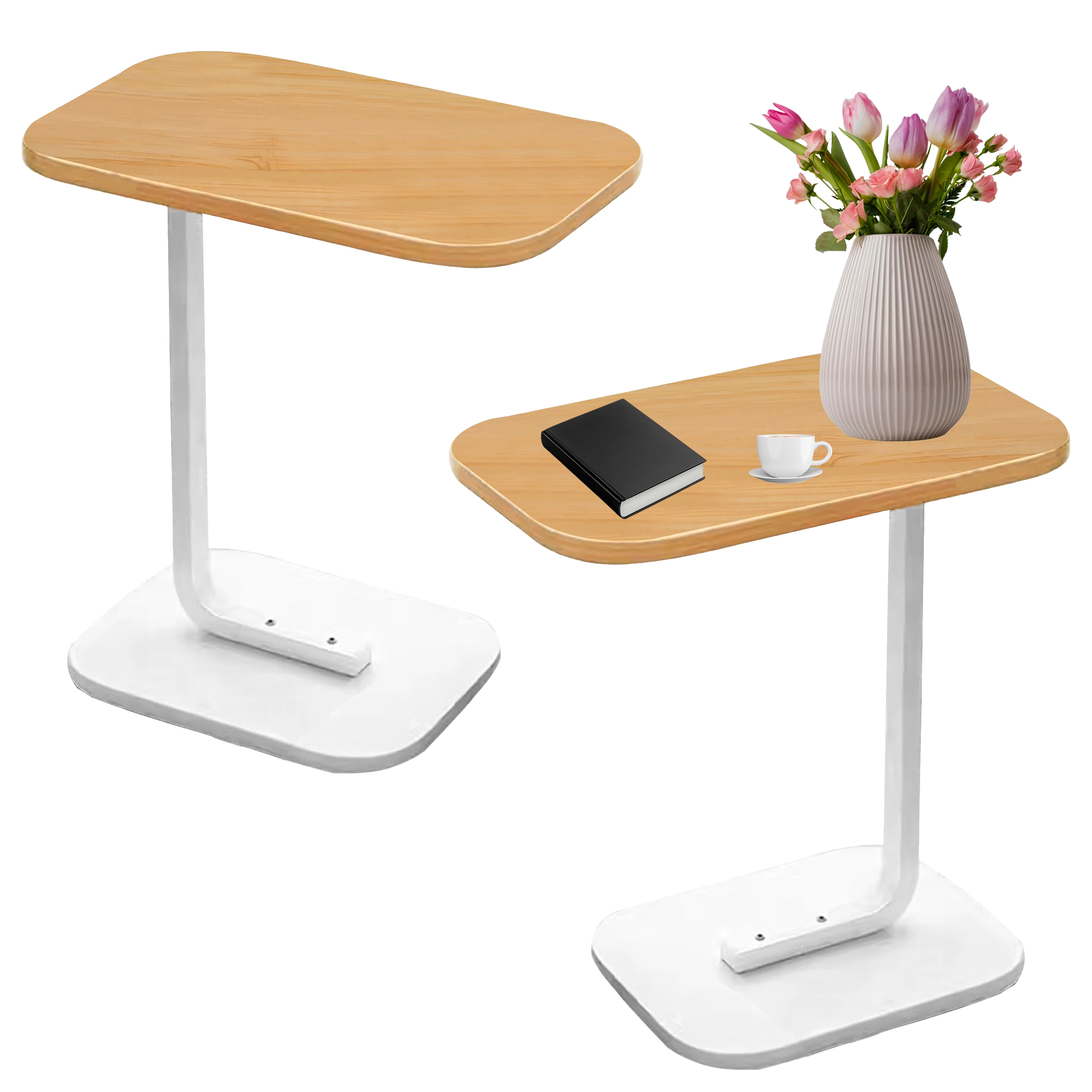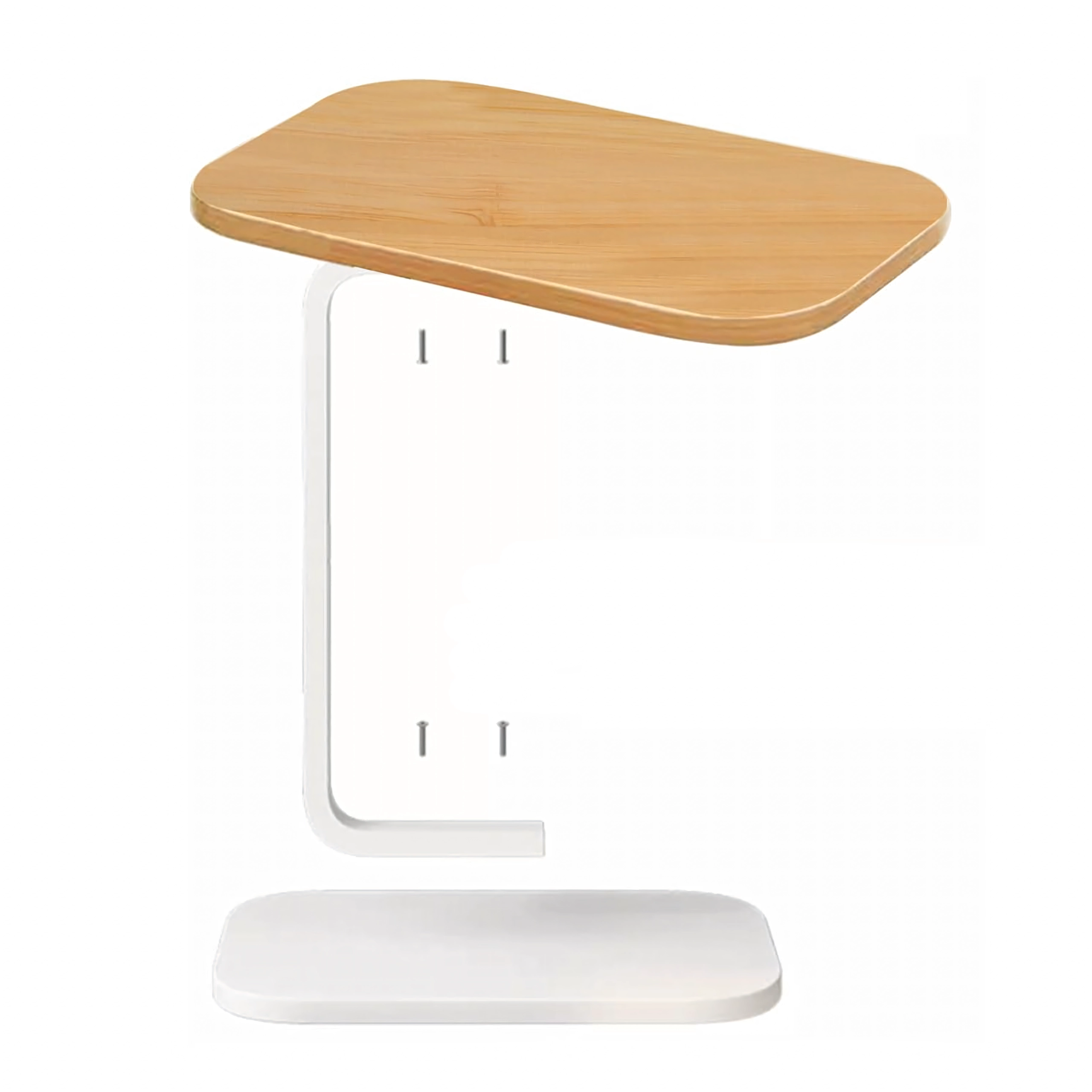 Telpu taupošs galds ar ovālu/apaļotām malām koka virsmu gaiša koka dekorā un izturīgu baltu metāla konstrukciju nodrošina ērtu lietošanu pie dīvāna vai gultas. C‑veids ļauj pamatni iebīdīt zem mēbeles un pietuvināt virsmu tieši tur, kur tā nepieciešama.