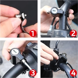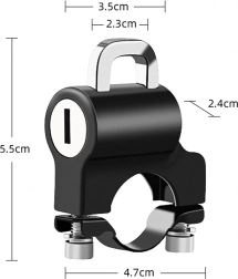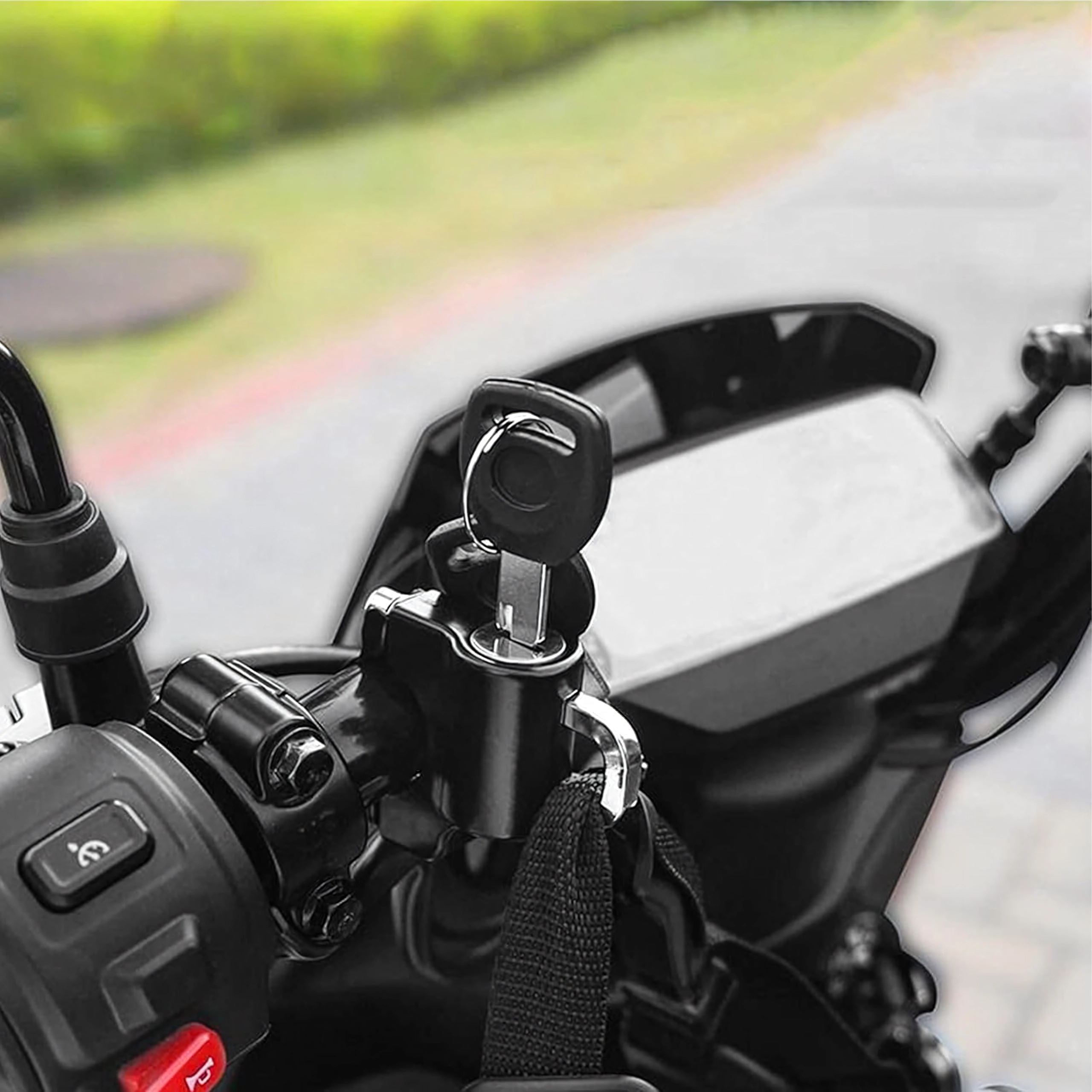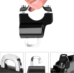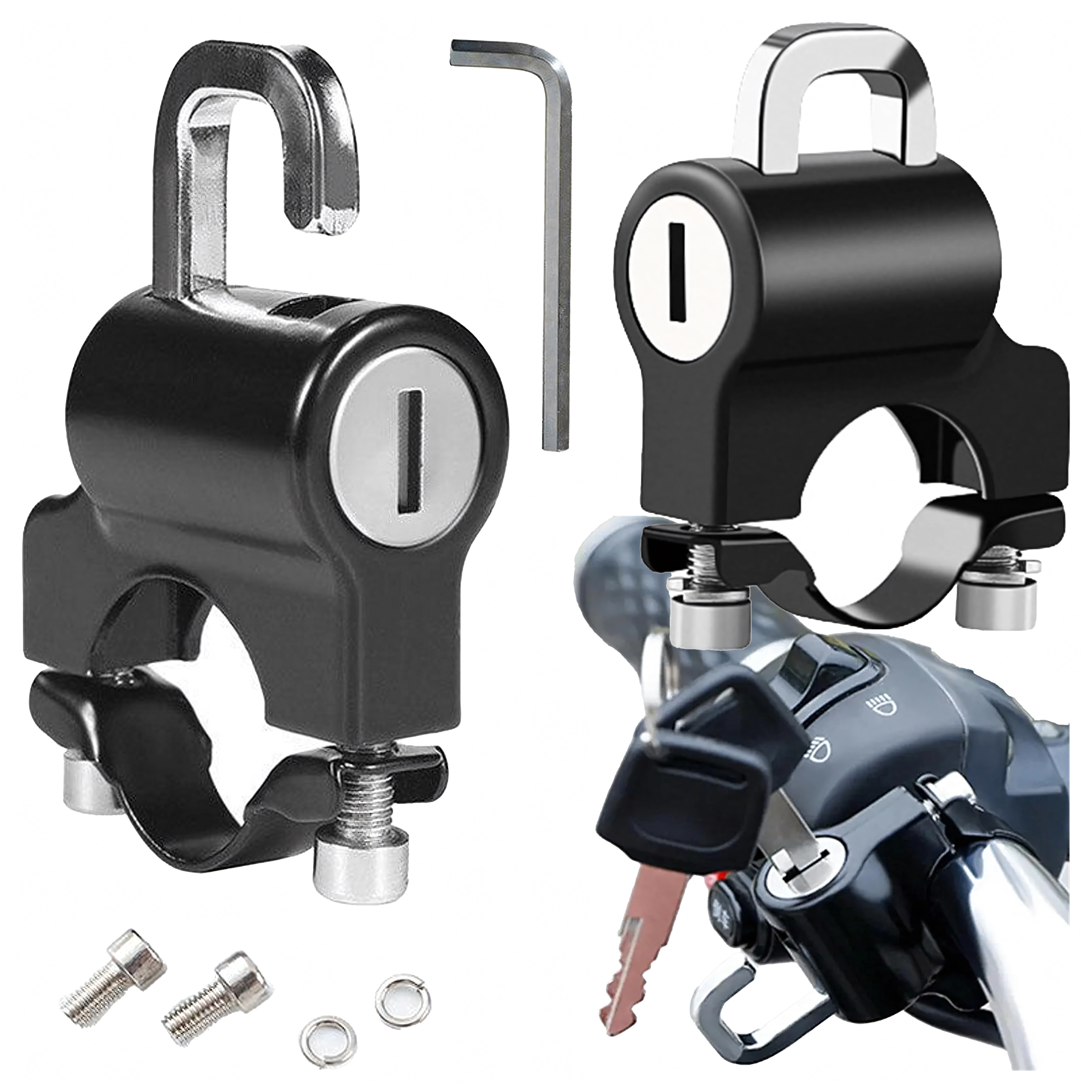 Praktisks un drošs veids, kā atstāt ķiveri pie transportlīdzekļa bez raizēm. Slēdzene ar skavu tiek piestiprināta tieši pie stūres, un ar atslēgu tiek noslēgta ķiveres actiņa vai siksna. Kompaktie izmēri netraucē vadībai, bet robustā metāla konstrukcija iztur laikapstākļus un ikdienas lietošanu.