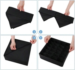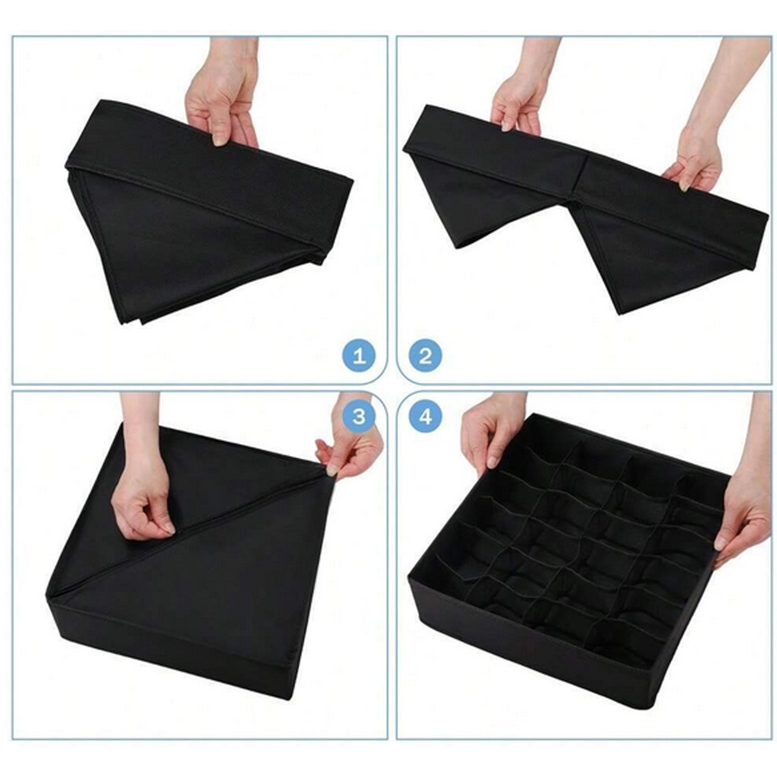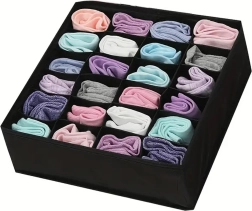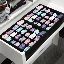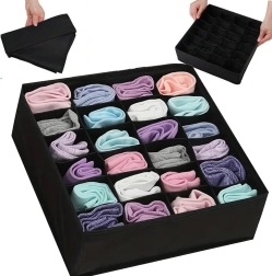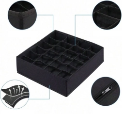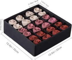 Izmēri 32 × 32 × 10 cm der lielākajai daļai standarta atvilktņu un atvērto plauktu. Organizators ir lieliska izvēle zeķēm, biksītēm, krūšturiem, zeķbiksēm, kaklasaitēm un aksesuāriem. Montāža ir ātra un vienkārša – pāris sekunžu laikā viss gatavs.