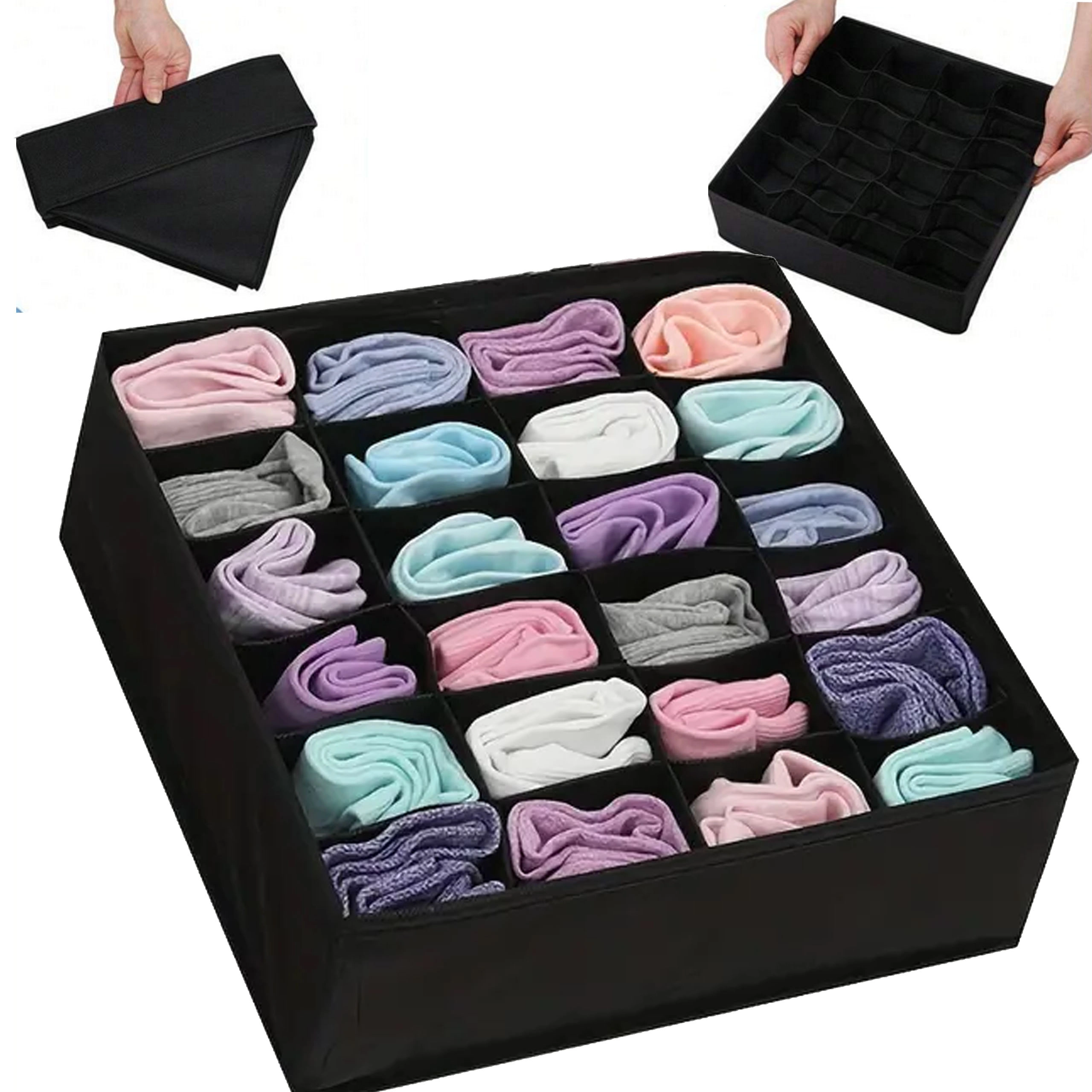 Praktisks atvilktnes organizators palīdzēs savaldīt haosu kumodē un skapī. Pateicoties 24 atsevišķām šūnām, jūs viegli sakārtosiet veļu, un katrai lietai būs sava vieta. Pastiprinātās sienas saglabā formu un atvieglo lietošanu, savukārt elpojošs neausts audums nodrošina gaisa cirkulāciju.