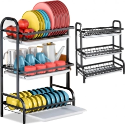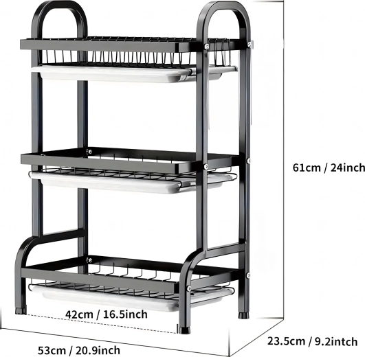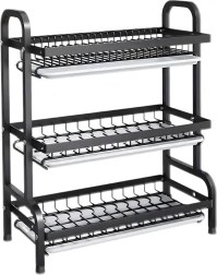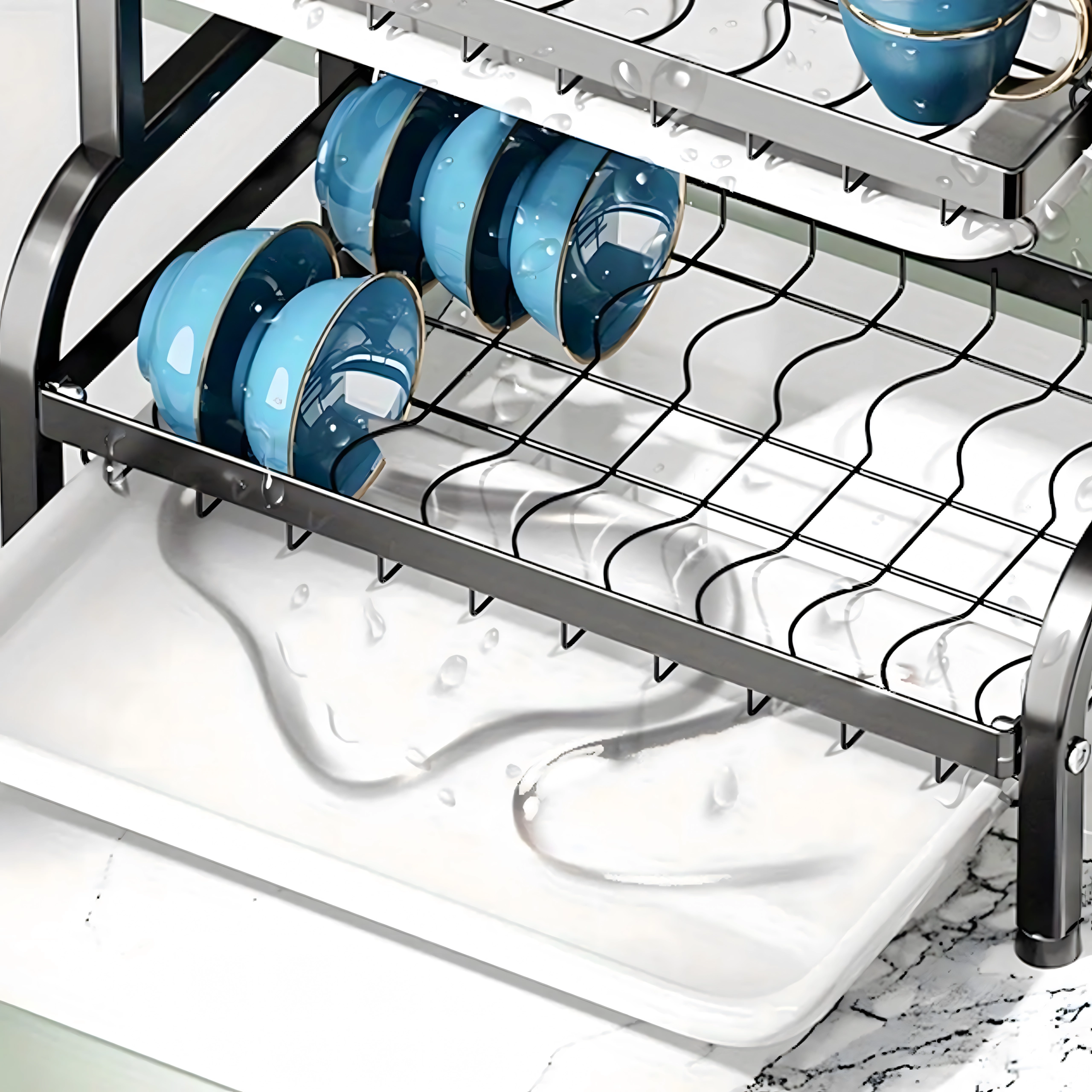 Šis ietilpīgais, trīs līmeņu XXL trauku žāvētājs apvieno izturīgu metāla konstrukciju ar tīru, modernu izskatu. Pateicoties pret rūsu izturīgam nerūsējošajam tēraudam un viegli izņemamām noteces paplātēm, virtuves virsma paliek sausa un sakārtota.