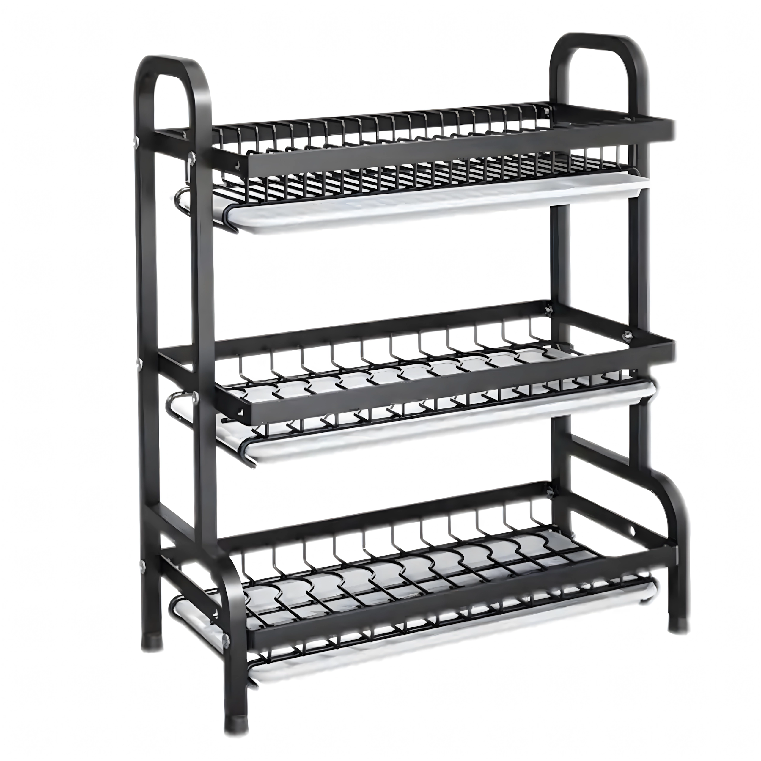Slāņveida izkārtojums nodrošina specializētu vietu šķīvjiem, bļodām, glāzēm un krūzēm, bet atvērtā stiepļu konstrukcija veicina ātru gaisa plūsmu un efektīvu žāvēšanu. Salokāms risinājums taupa vietu, kad netiek lietots.