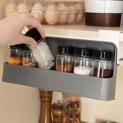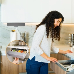 Praktisks piekārtais garšvielu organizators ļauj turēt iecienītās garšvielas vienmēr pa rokai un vienlaikus atbrīvot darba virsmu. Pateicoties pārskatāmai, iebīdāmai konstrukcijai, jūs viegli izvelksiet sliedi ar burciņām un uzreiz redzēsiet, kas nepieciešams. Uzstādīšana ar 3M līmlenti nodrošina stingru stiprinājumu bez urbšanas un mēbeļu bojāšanas.