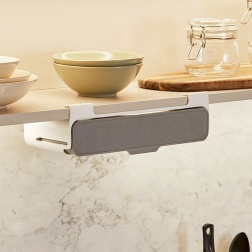 Spēcīgā 3M pašlīmējošā līmlente droši notur organizatoru zem plaukta vai skapītī. Uzstādīšana aizņem tikai pāris minūtes un neprasa ne instrumentus, ne urbšanu.