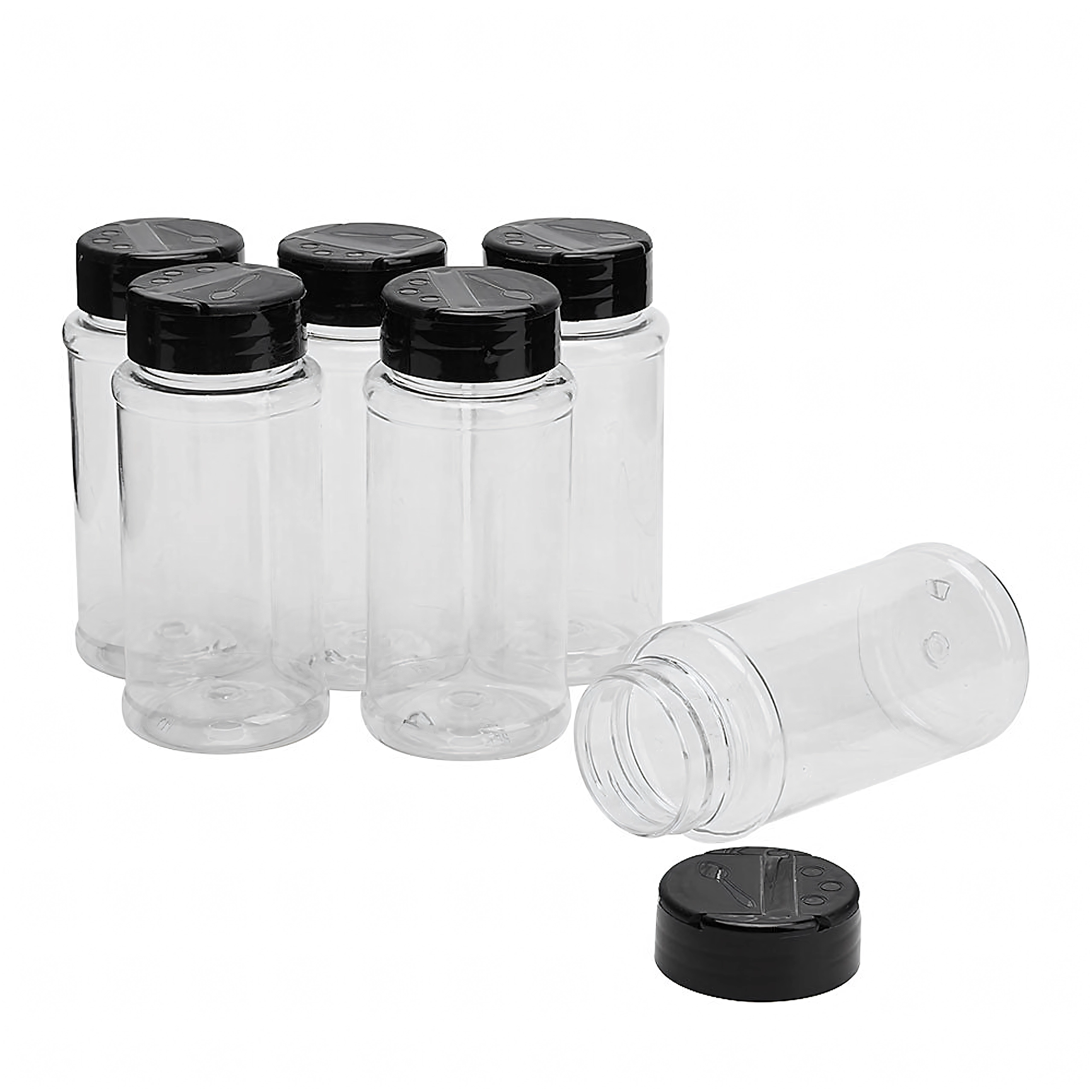 Komplektā ietilpst sešas vienādas burciņas garšvielām. Caurspīdīgās sienas atvieglo satura identificēšanu, bet vāciņi saglabā svaigumu.
