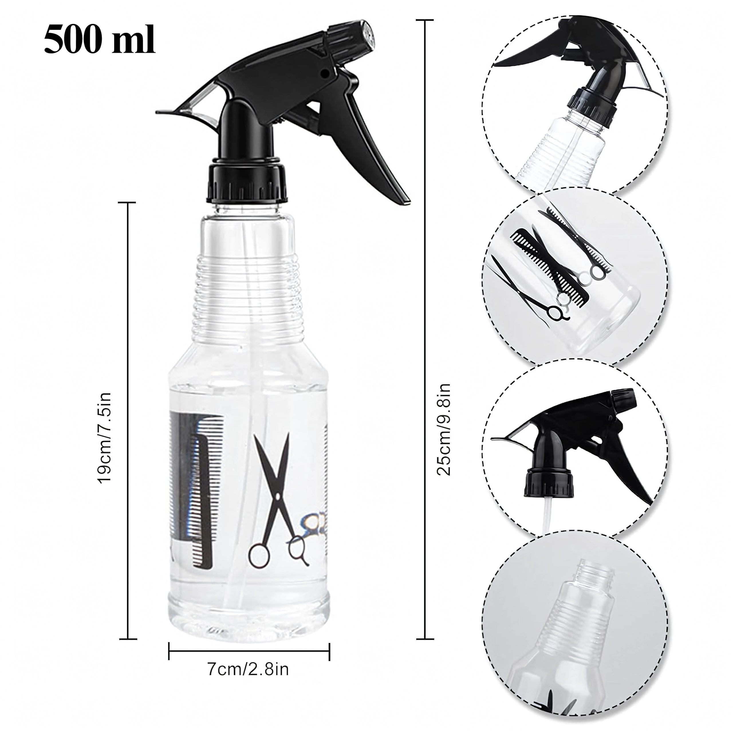 Praktisks universāls 500 ml smidzinātājs frizētavai, dārzam un mājai. Piedāvā regulējamu sprauslu no smalkas miglas līdz spēcīgākai strūklai, caurspīdīgu tvertni ērtai līmeņa kontrolei un ērti lietojamu sprūda mehānismu. Ideāli piemērots matiem, augiem un telpu atsvaidzināšanai.