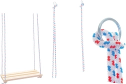 Klasiskas koka šūpoles dabīgā tonī mājai un dārzam. Nodrošina stabilu un drošu šūpošanos, izturīgu koka sēdvirsmu 46 × 19 cm, celtspēju 80 kg un izturīgas virves 1,7 m garumā. Piemērotas bērniem no 3 gadu vecuma.