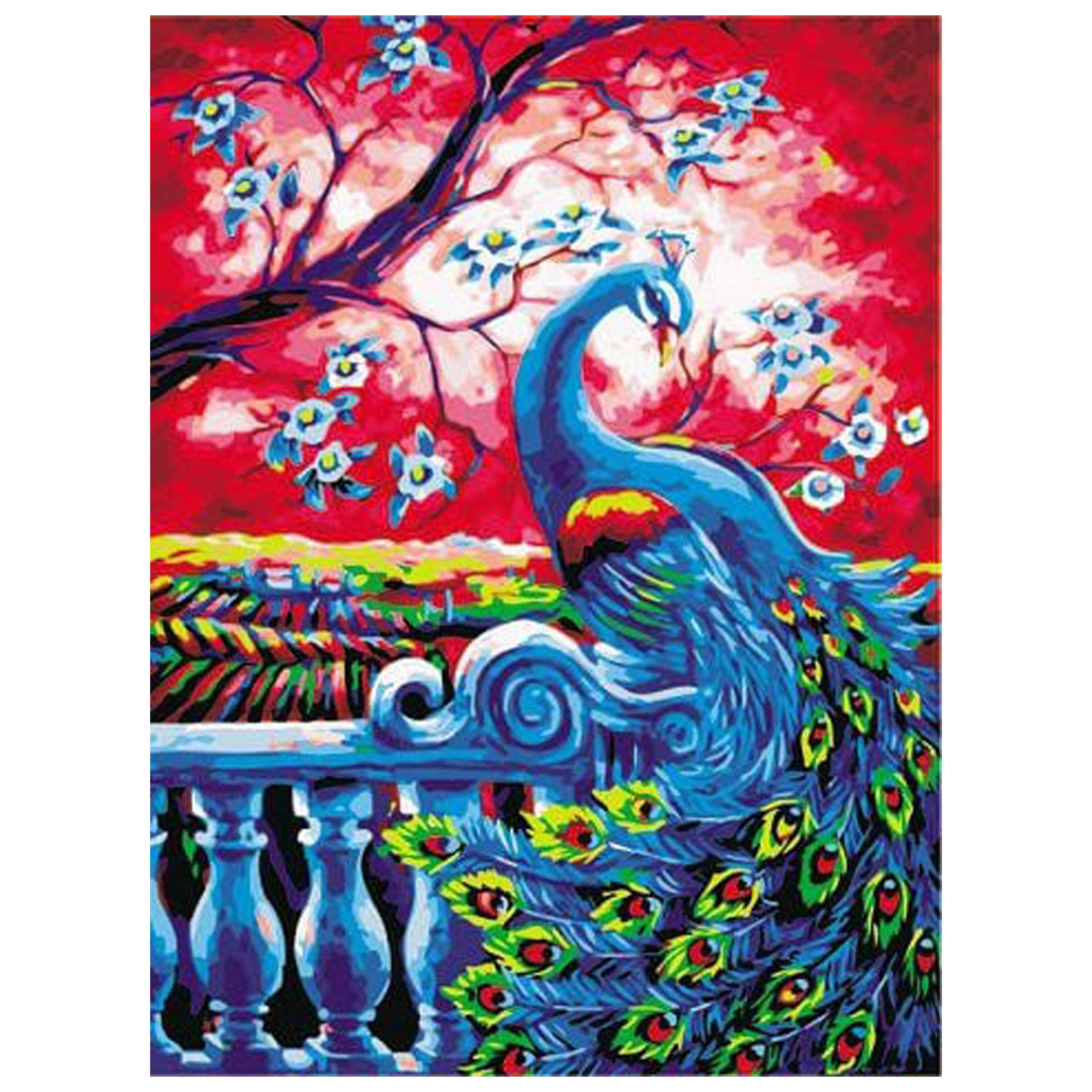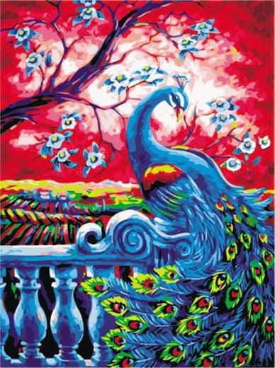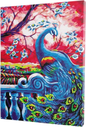 Izveidojiet savu gleznu bez stresa – vienkārši aizpildiet numurētās zonās atbilstošās krāsas, un pakāpeniski jūsu priekšā atklāsies dzīvs pāva motīvs. Pateicoties audeklam, kas jau ir uzstiepts uz koka blindrāmja, varat sākt gleznot uzreiz pēc izpakošanas un gatavo darbu uzreiz piekārt.