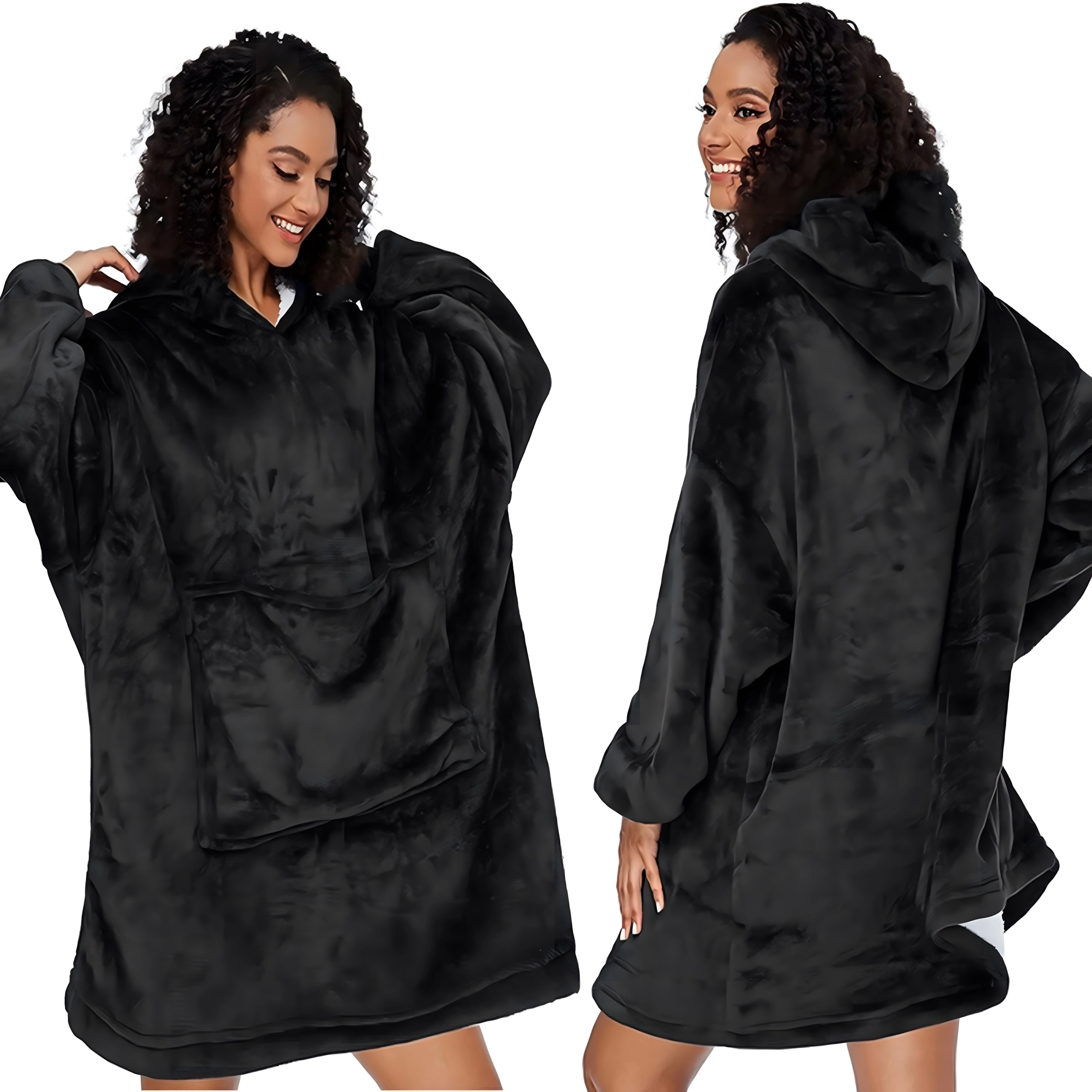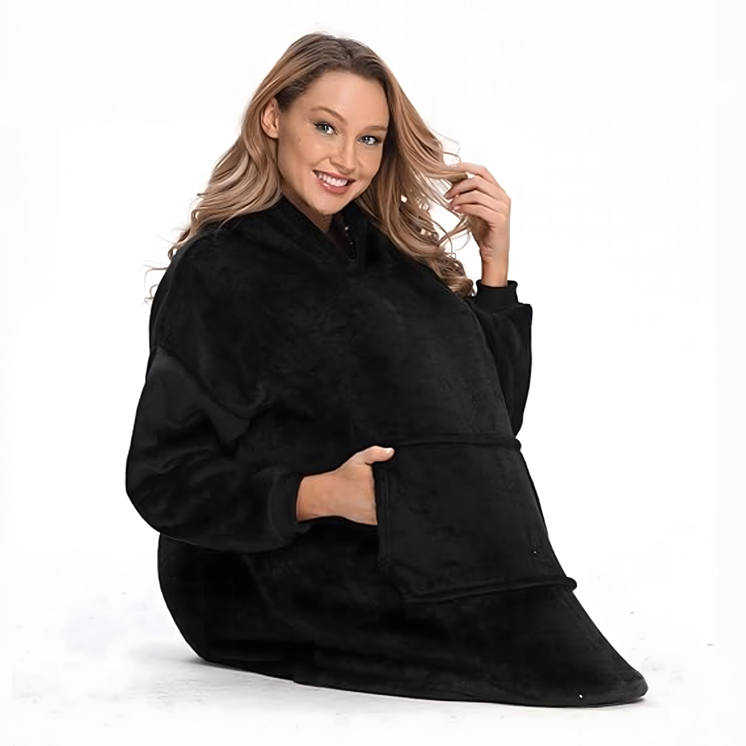 Atklājiet maksimālu komfortu un siltumu ar šo pārlielo valkājamo segu ar kapuci. Tā ir mīksta, blīva un silta, ideāli piemērota vēsām dienām un vakariem gan sievietēm, gan vīriešiem. Lielā klaberkabata ietilpina telefonu vai pulti, un universālais piegriezums nodrošina kustību brīvību atpūtai mājās, filmu skatīšanai vai darbam no mājām.
