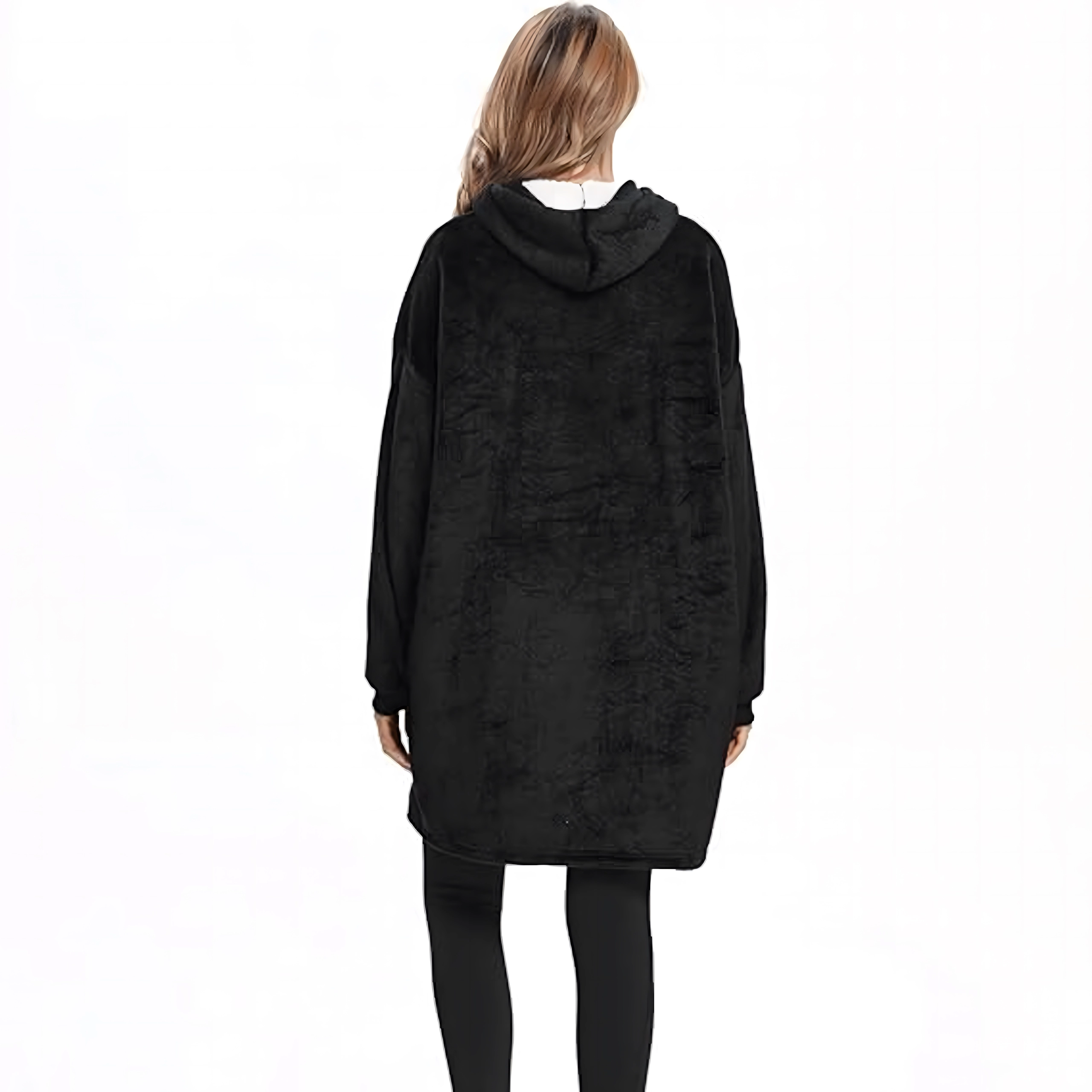 Pateicoties plašajai kapucei un lielajai priekšējai kabatai, viss nepieciešamais būs vienmēr pa rokai, un galva – siltumā. Melnā krāsa ir mūžīga un viegli saskaņojama ar jebkuru interjeru. Ideāli piemērota mierīgai atpūtai uz dīvāna, grāmatu lasīšanai un gariem filmu maratoniem.